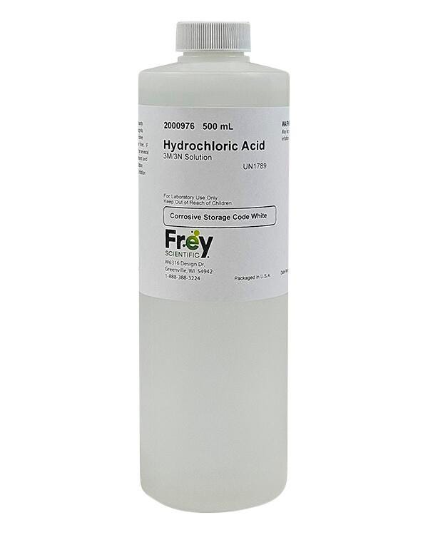 • Frey Scientific Hydrochloric Acid, 3.0M Solution, Lab Grade, 500mL