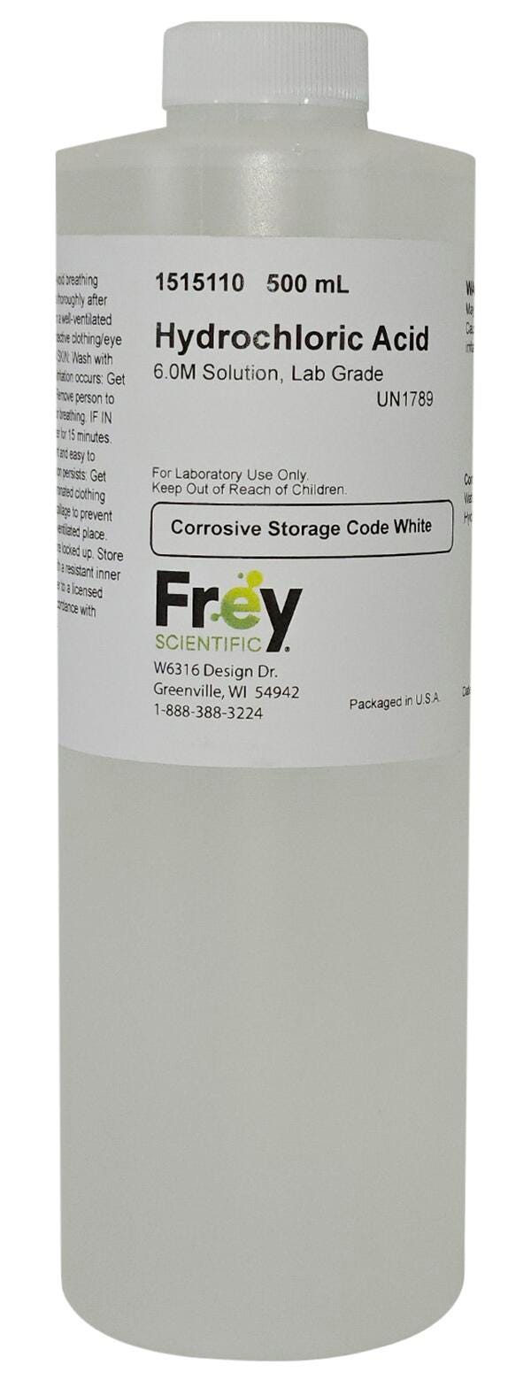 Frey Scientific Hydrochloric Acid, 6.0M Solution, Lab Grade, 500mL