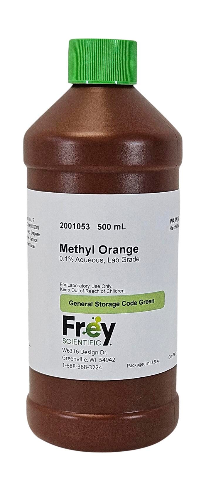 Frey Scientific Methyl Orange, 0.1% Aqueous, Lab Grade, 500mL
