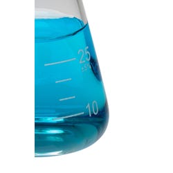 These borosilicate glass flasks from Frey Scientific are designed to give the best combination of thermal shock resistance and physical strength. Use them to measure, mix, and pour liquids for scientific experiments and research in classrooms and labs. This pack contains 12 flasks with a capacity of 25 mL each.Features