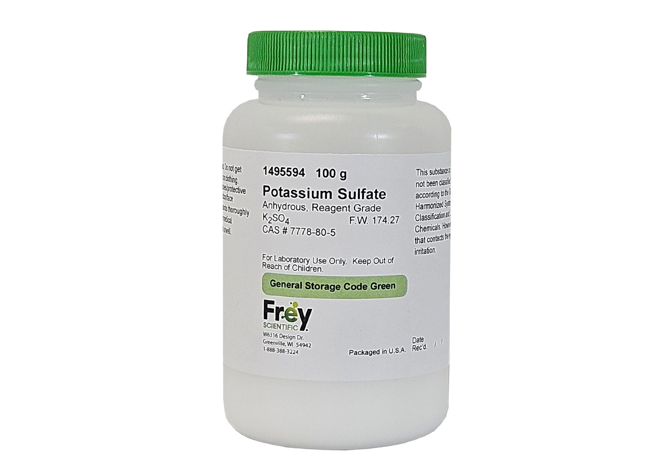 Frey Scientific Potassium Sulfate, White Crystal, Reagent Grade, 100 Grams