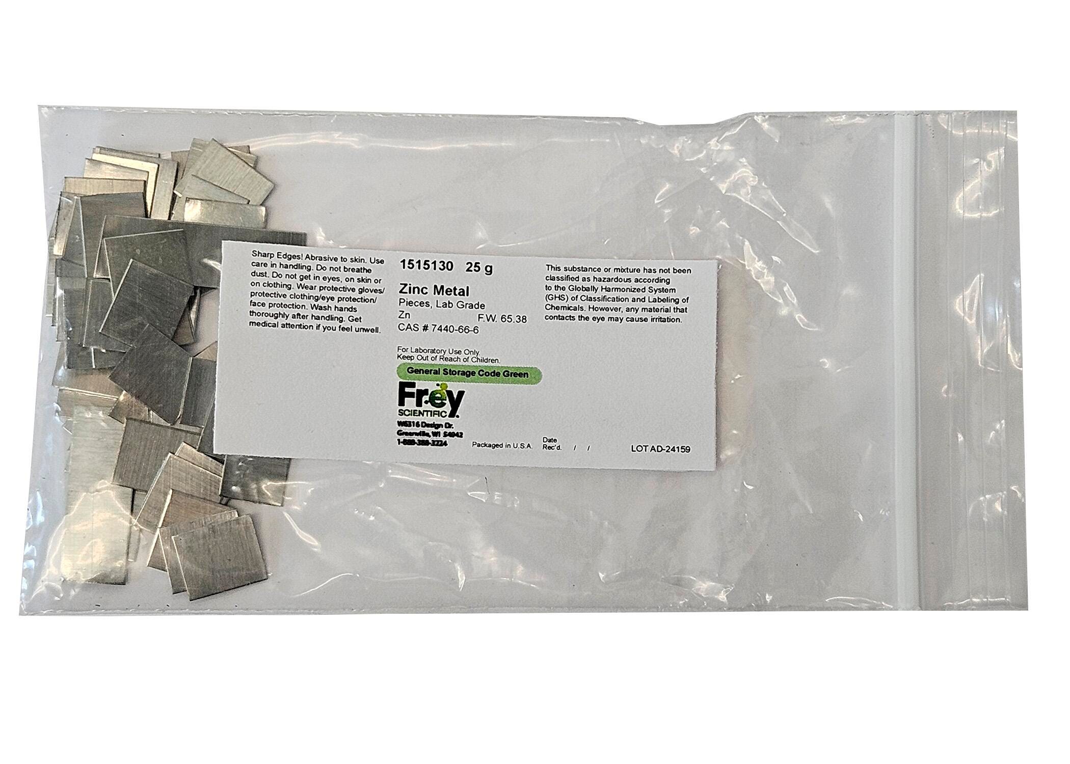 Frey Scientific Zinc Metal Pieces, 25 Grams, Lab Grade