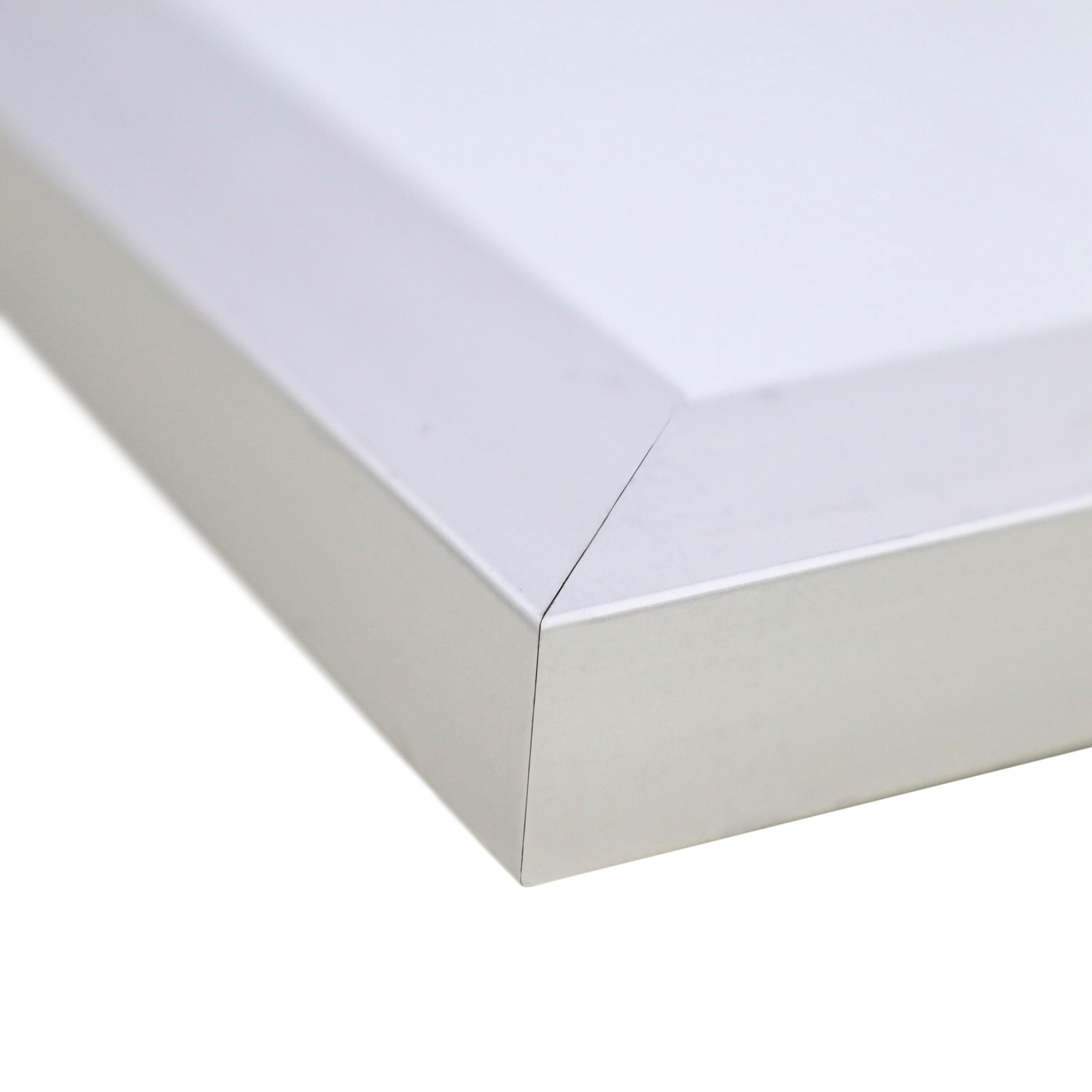 Satin anodized aluminum frame with mitered corners for added strength