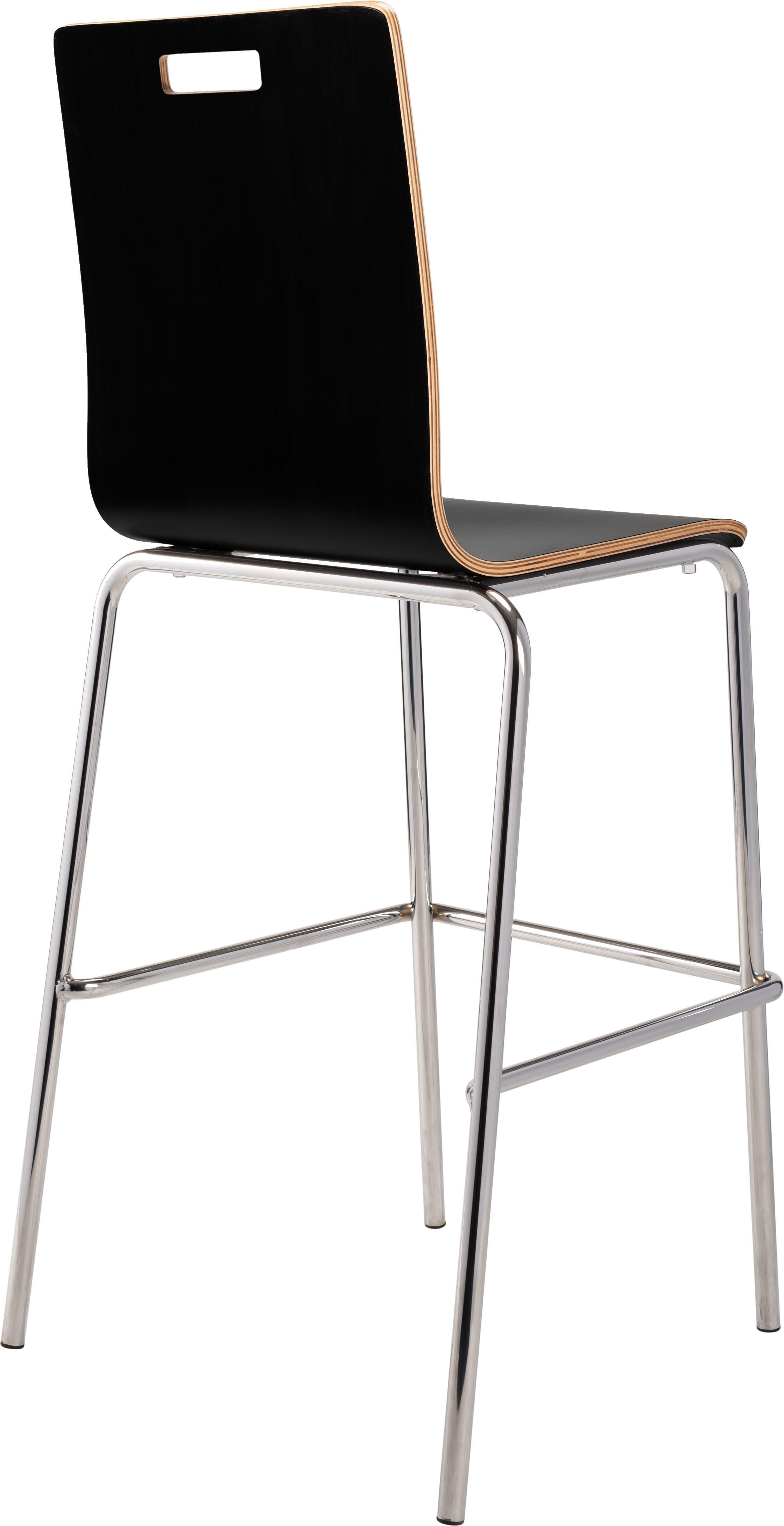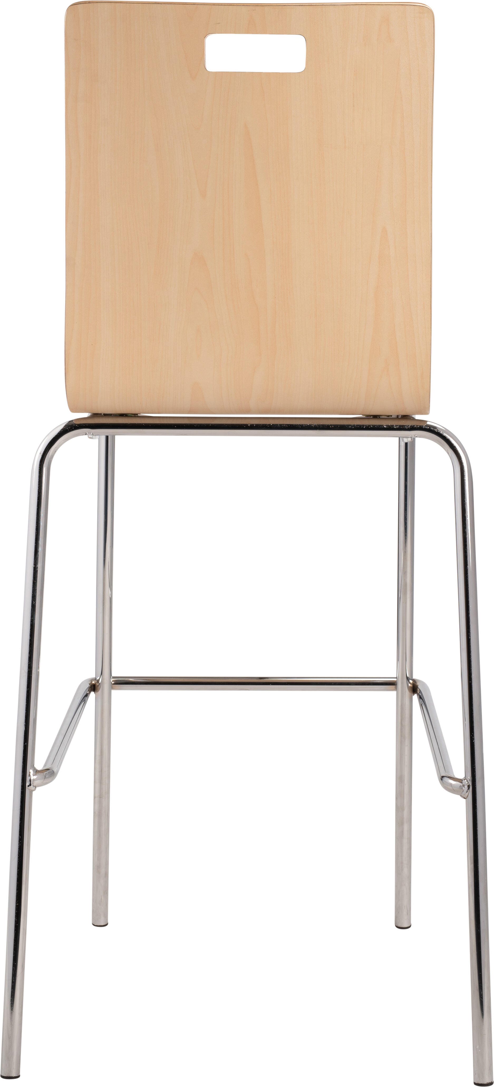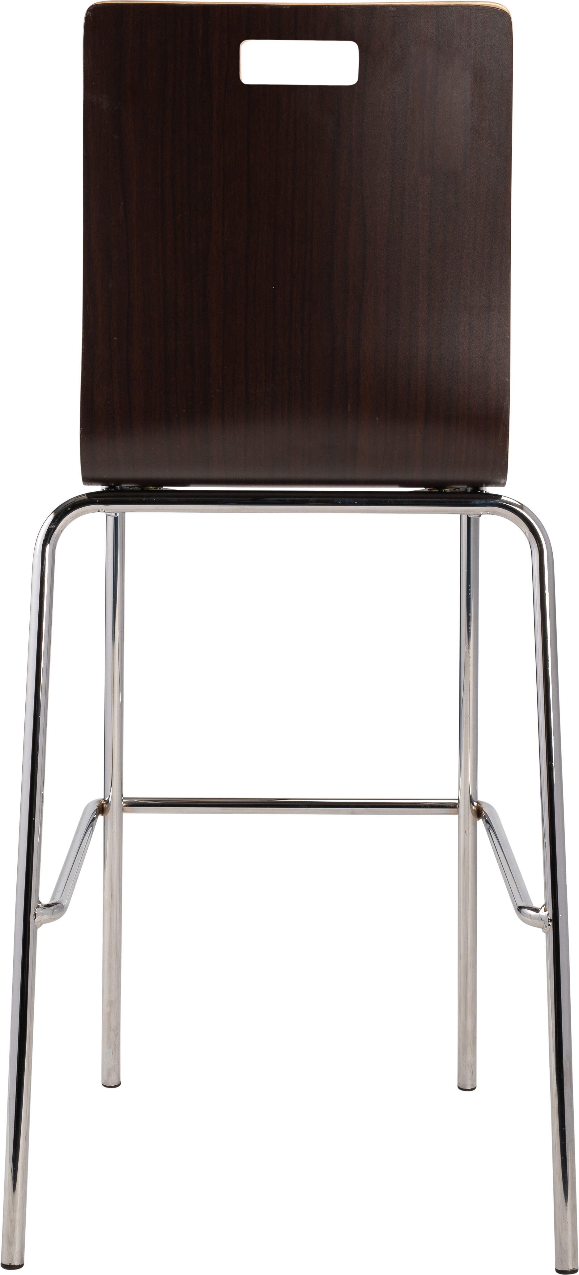 The Bushwick Café Chair and Barstool from NPS! Features 8-layer bent plywood seat with a high-end HPL finish, legs made of 7/8 in. 16 Gauge chrome tubing, and non-marring, plastic glides. Modern handle for easy movement and storage. Weight capacity exceeds 500 lbs.
