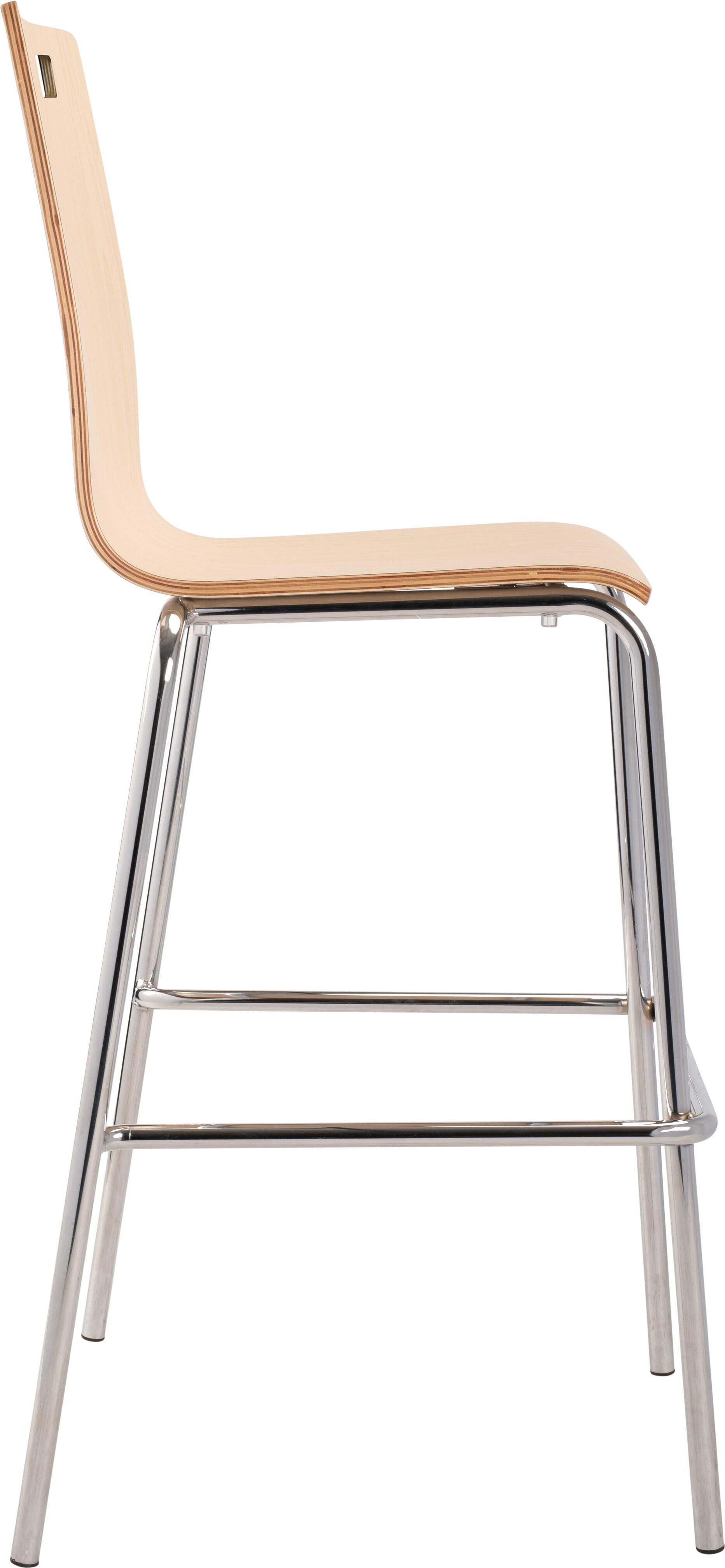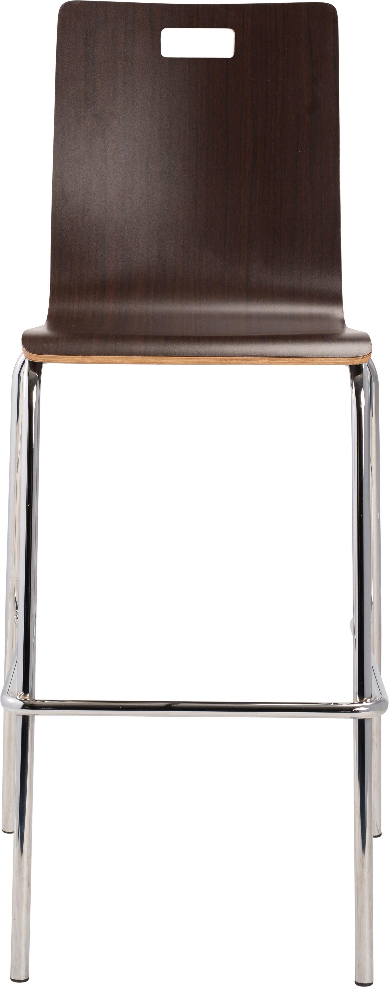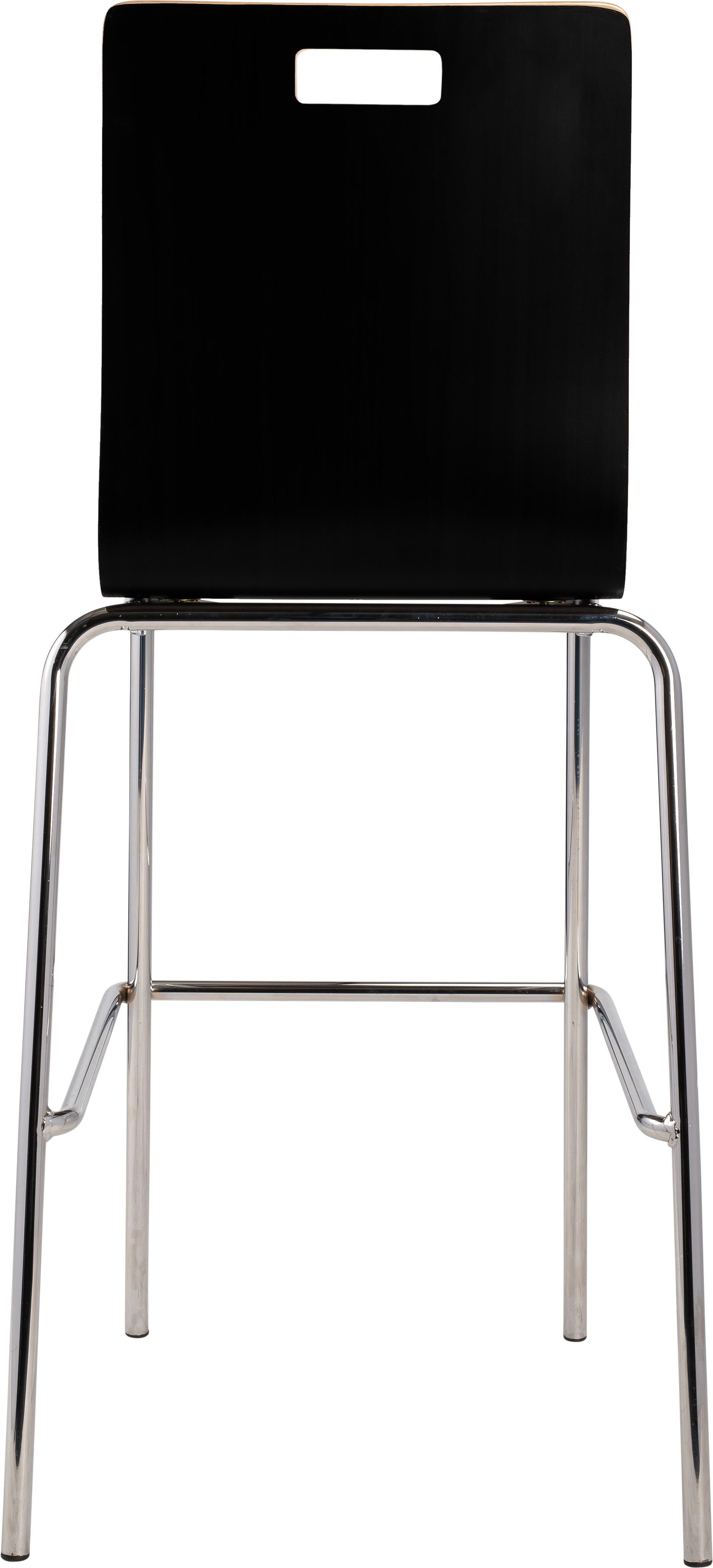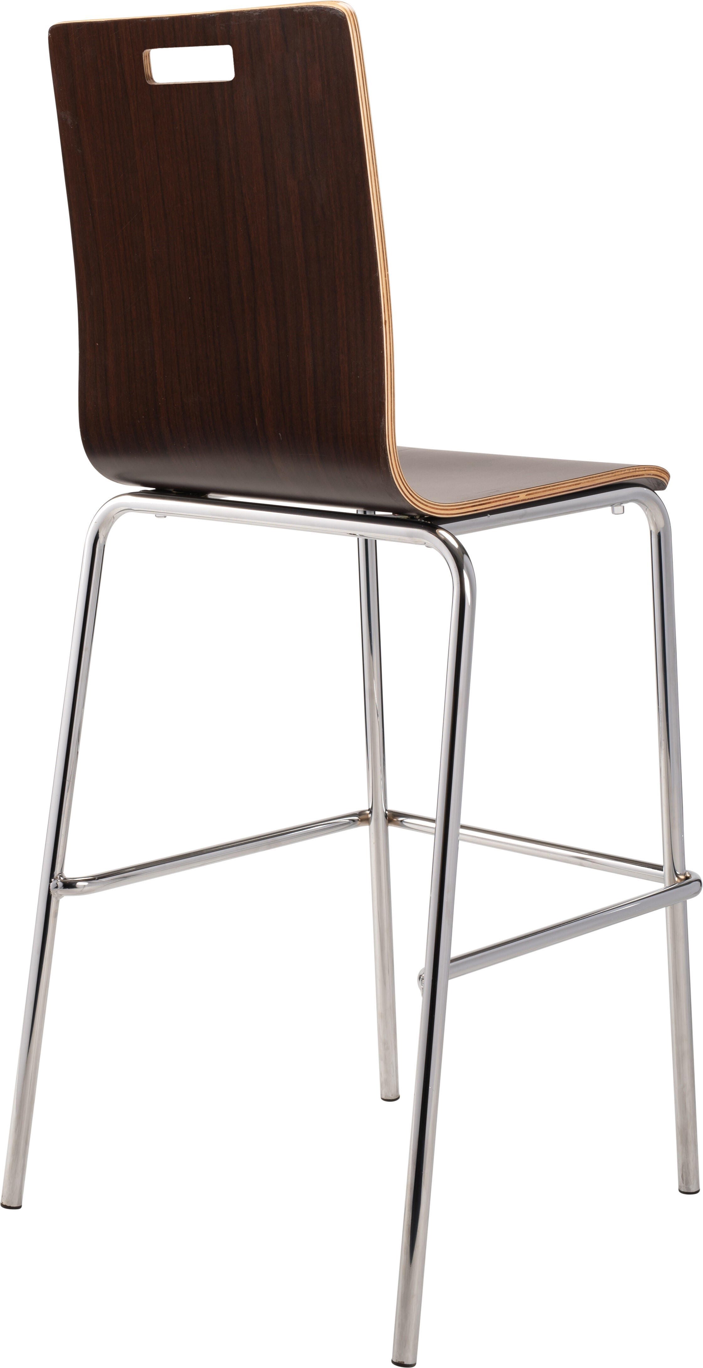 The Bushwick Café Chair and Barstool from NPS! Features 8-layer bent plywood seat with a high-end HPL finish, legs made of 7/8 in. 16 Gauge chrome tubing, and non-marring, plastic glides. Modern handle for easy movement and storage. Weight capacity exceeds 500 lbs.