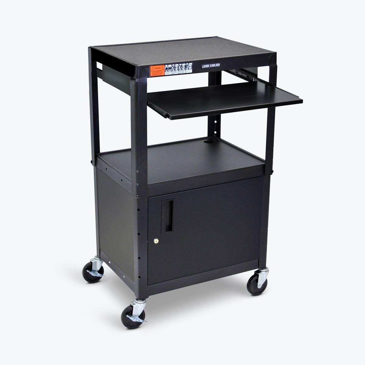Luxor Adjustable Steel AV Cart with Cabinet and Pull-out Shelf, 24 x 18 x 24 to 42 Inches, Black
