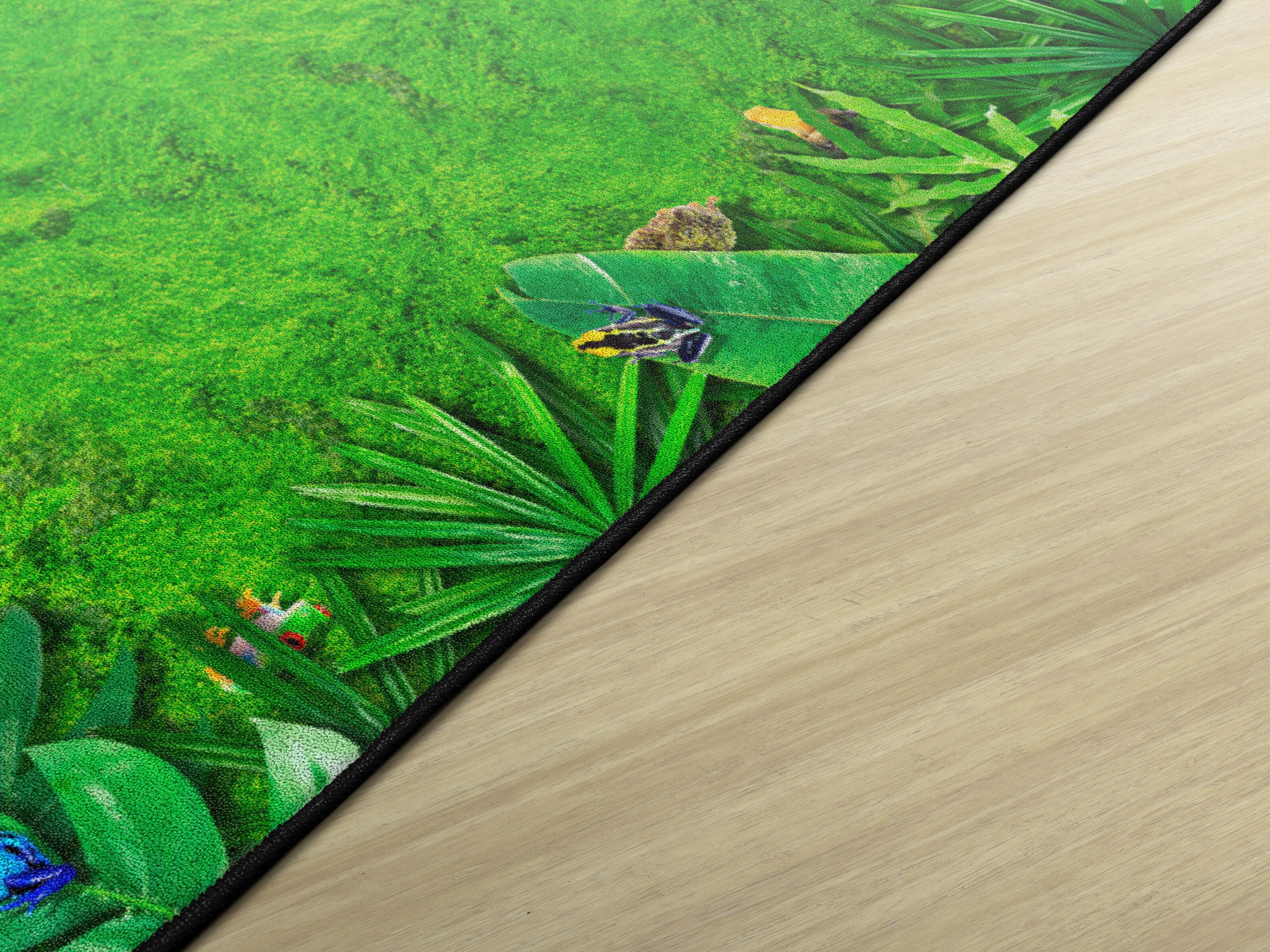 Sit among the frogs without getting your feet wet on this photorealistic rainforest frog carpet, designed to inspire students of all ages and ability levels. This classroom carpet comes in a variety of sizes to best fit your space.