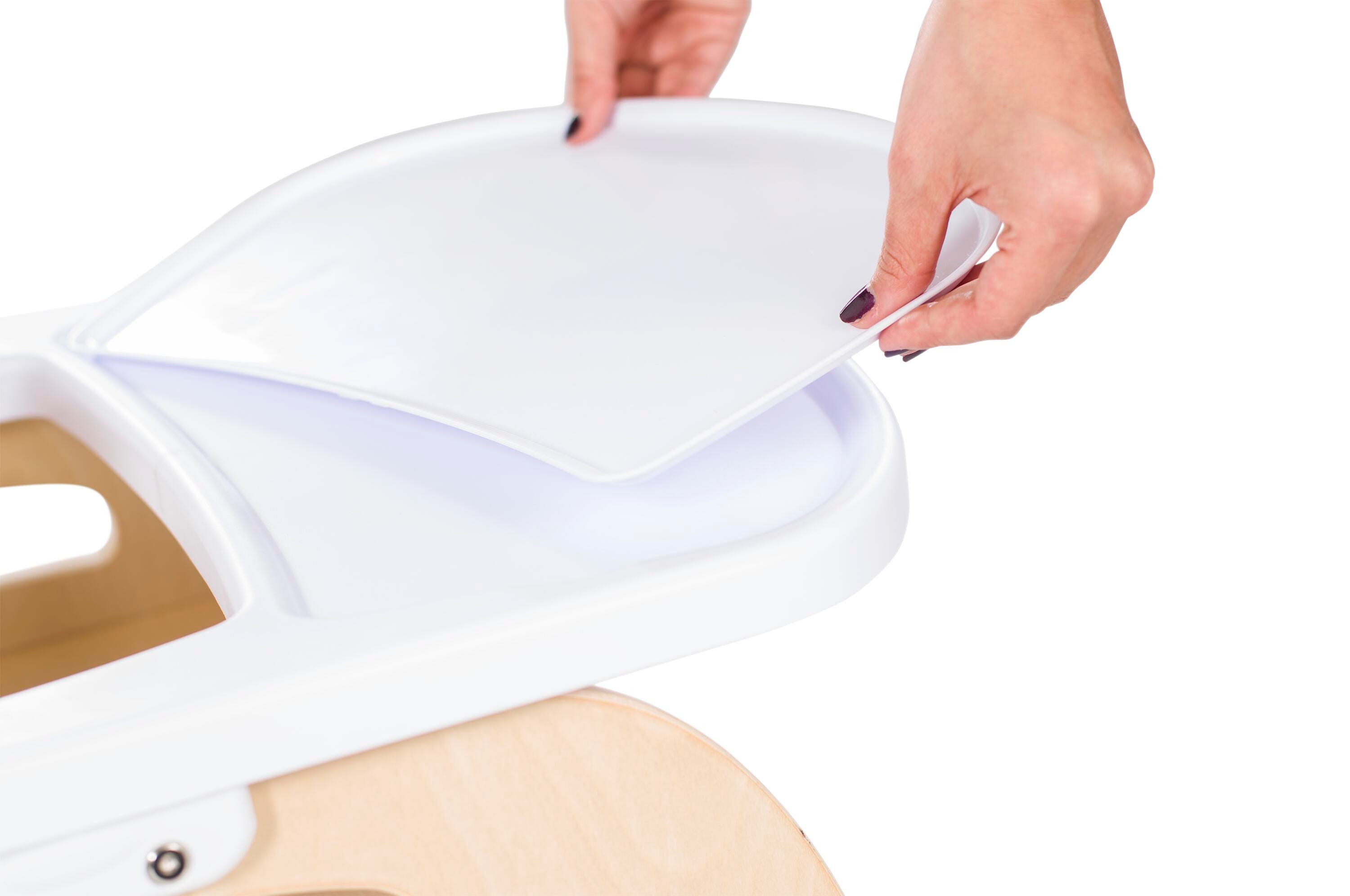 This ultra-efficient feeding chair has an EasyClean™ Tray that adjusts and removes for convenience and comfort. The wide, no-tip base keeps the child stable and secure on the floor, while strapped with the adjustable harness. This Baltic birch chair enables children to self-load with minimal assistance and has a food-service grade finish that is easy to clean and sanitize.