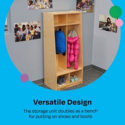 - These classic lockers have a multi-purpose design that doubles as a bench for children to sit while putting on shoes or boots