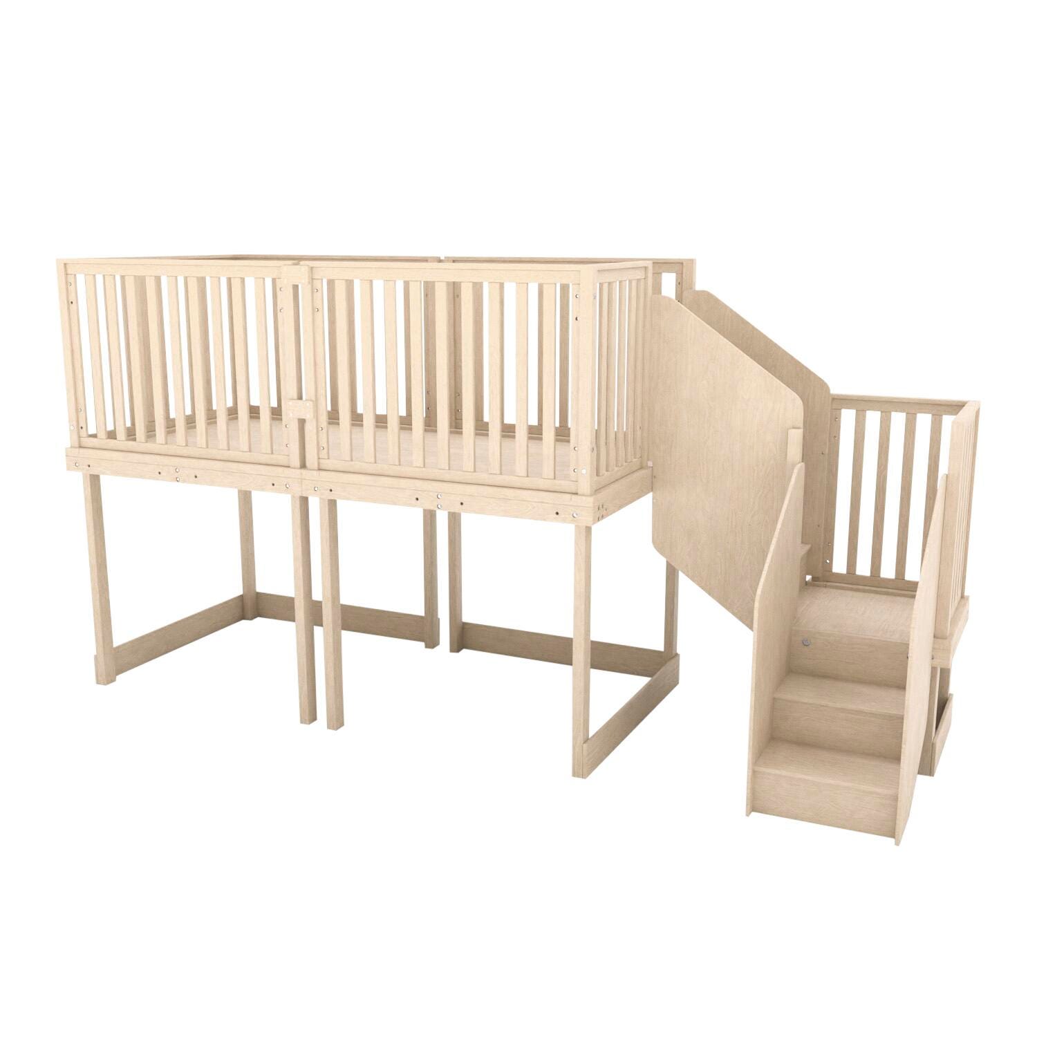 Childcraft® Standard Height Basic Double Loft with Wood Rails provides an exciting and functional addition to any early childhood space. Crafted from solid maple and birch panels, this indoor play loft offers exceptional strength and durability while maintaining a safe and welcoming space for play, reading, and social interaction. Featuring slatted wood rails, educators and caregivers can easily supervise children. Extra-wide steps with high handrails ensure safety and accessibility, while the spacious upper level allows for group activities. The lofted design also maximizes space, creating storage or quiet activity areas beneath the platform. Assembly required. The full unit measures 11 feet 10-1/8 inches W x 4 feet D x 6 feet 2 inches H with a 96 W x 48 D inches loft platform size. Recommended age range is 2-5 years old.Features
