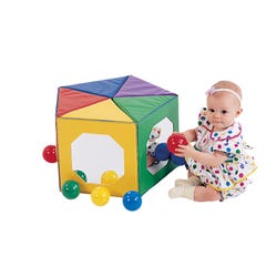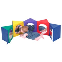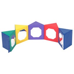 Give tummy time a new dimension with this delightful semi-circular play area. The Pentagon unfolds into a kaleidoscopic theater of visual perception with five distinct mirror faces, perfect for creating a more visually stimulating playroom experience for young ones. Bright primary colors aid in cognitive and visual stimulation. The Pentagon is covered in wipe-clean material. Measures 20 W x 19 D x 12 H inches.Features