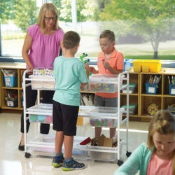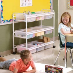Teachers have told us they love clear tubs to help students (and themselves) keep everything orderly and visible. This cart is designed to hold up to 90 pounds and to be used within a classroom. Lifetime frame and tub warranty.Features