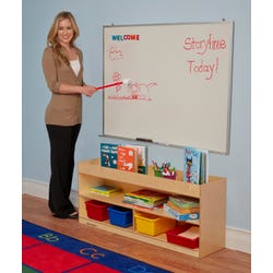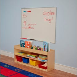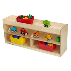The Childcraft® Narrow Storage Unit is the perfect addition to classrooms, play areas, and childcare centers, offering three spacious compartments for organizing books, games, and learning materials. Designed at a toddler-friendly height, this storage cabinet is ideal for easy access and can also be placed under markerboards or along walls to maximize floor space. The 3-inch deep well top prevents smaller items from rolling off, keeping supplies securely in place. Made from durable birch plywood with an easy-to-clean finish, this organizer is built for long-lasting use. Comes fully assembled. Measures 47-3/4 W x 12 D x 20 H inches.Features