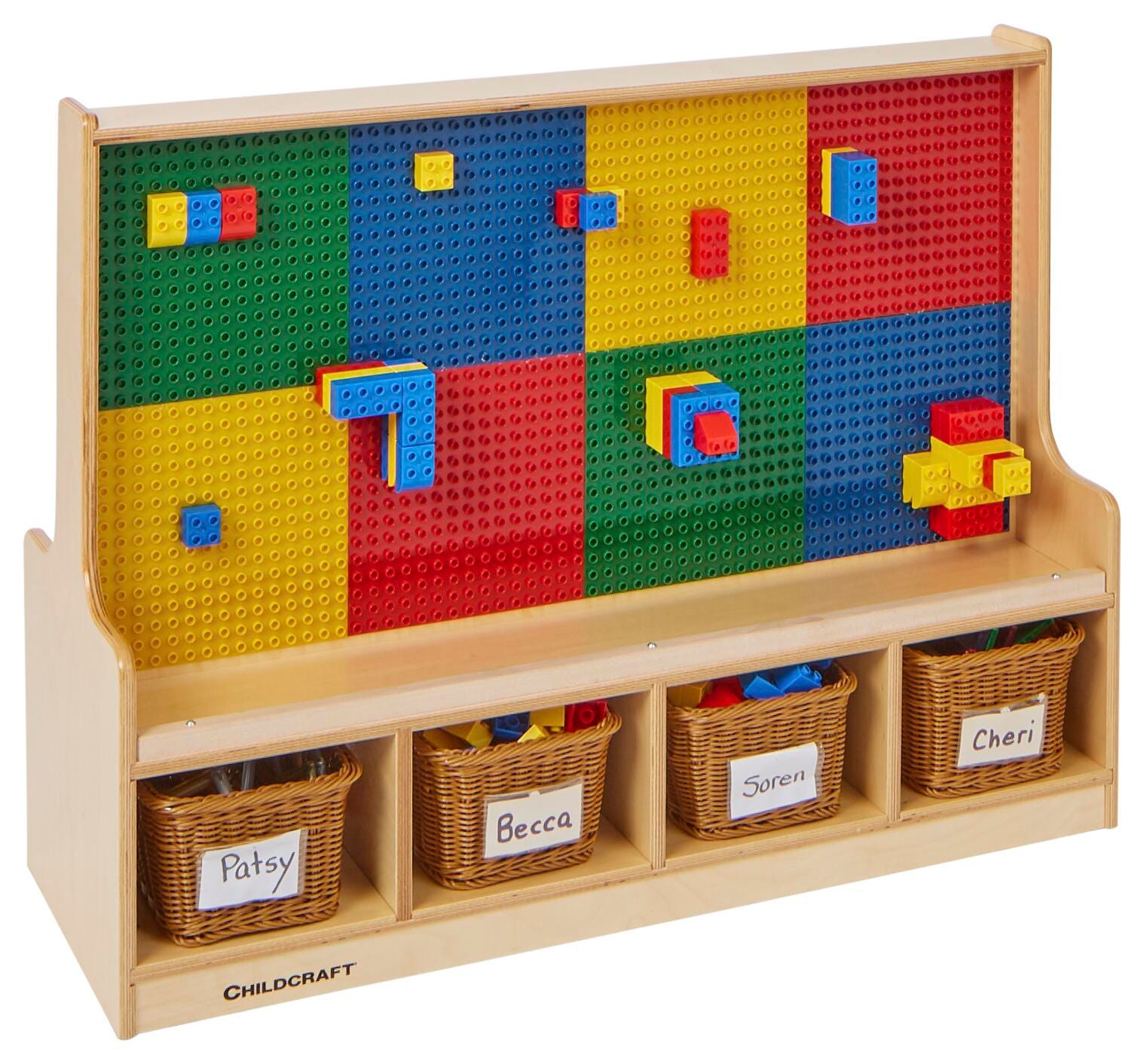 Childcraft Dual-Sided Building-Brick Activity Center, Preschool Grid, Whiteboard, Baskets, 39-1/2 x 14-1/4 x 30 Inches