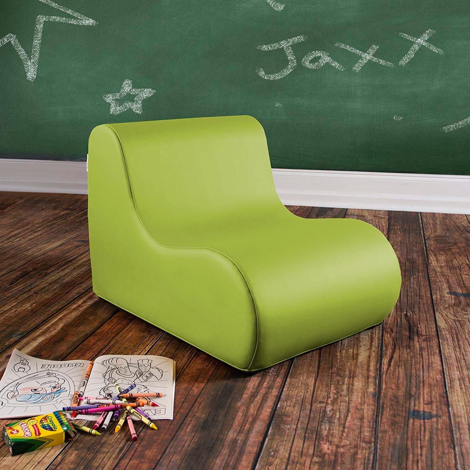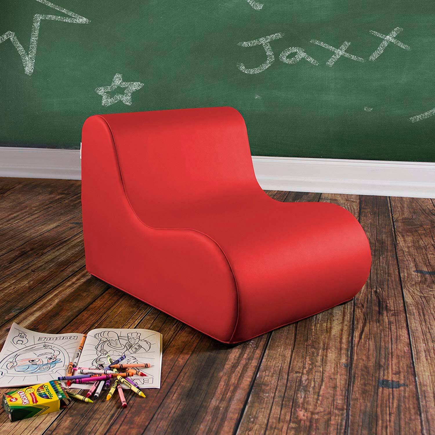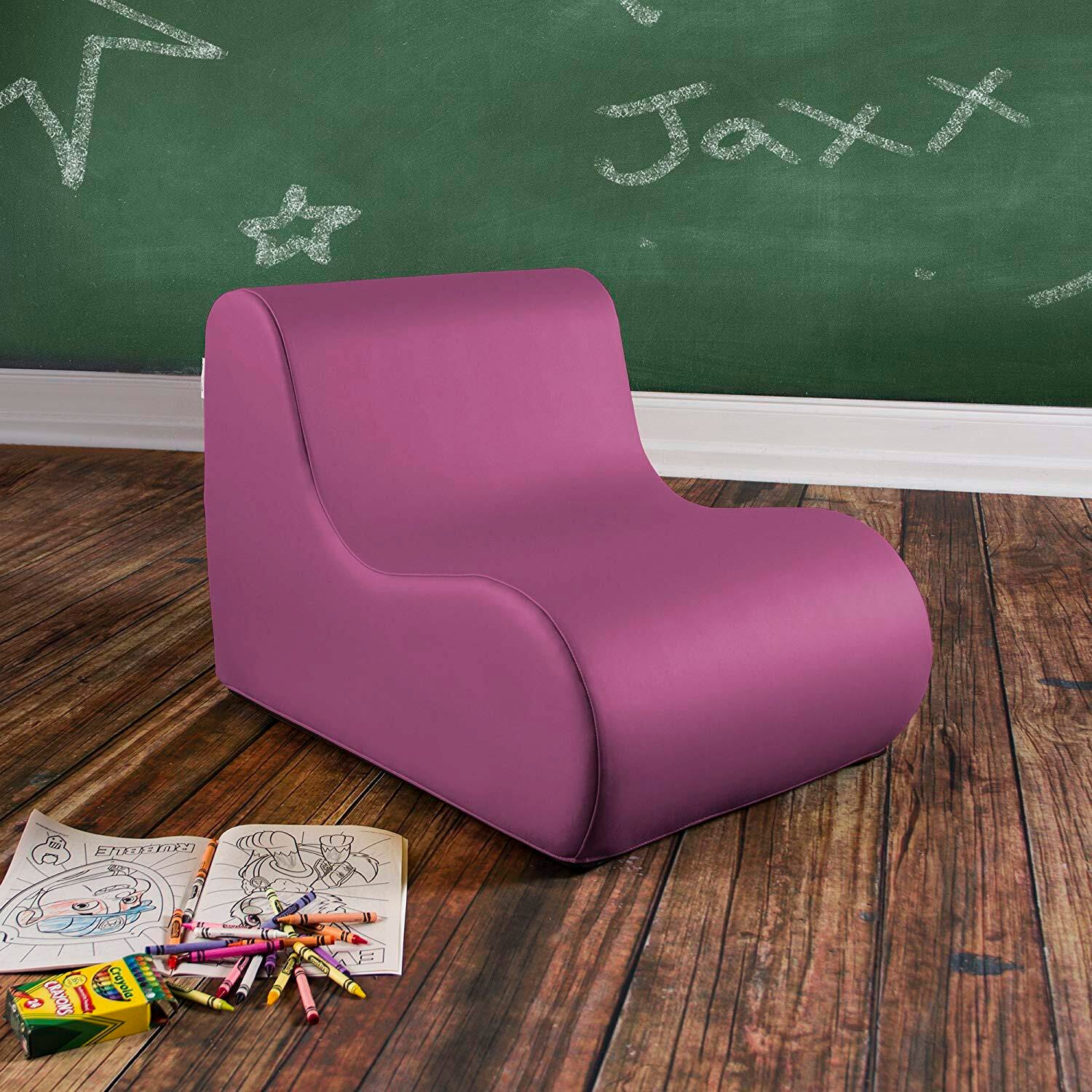 Description Comfortable and ergonomically designed chair perfect for classrooms, daycare centers, and play areas. Please specify color when ordering.Features Available in a selection of beautiful colors to match any environment Vinyl cover to help keep chair clean Unique shape adds visual interest to any room