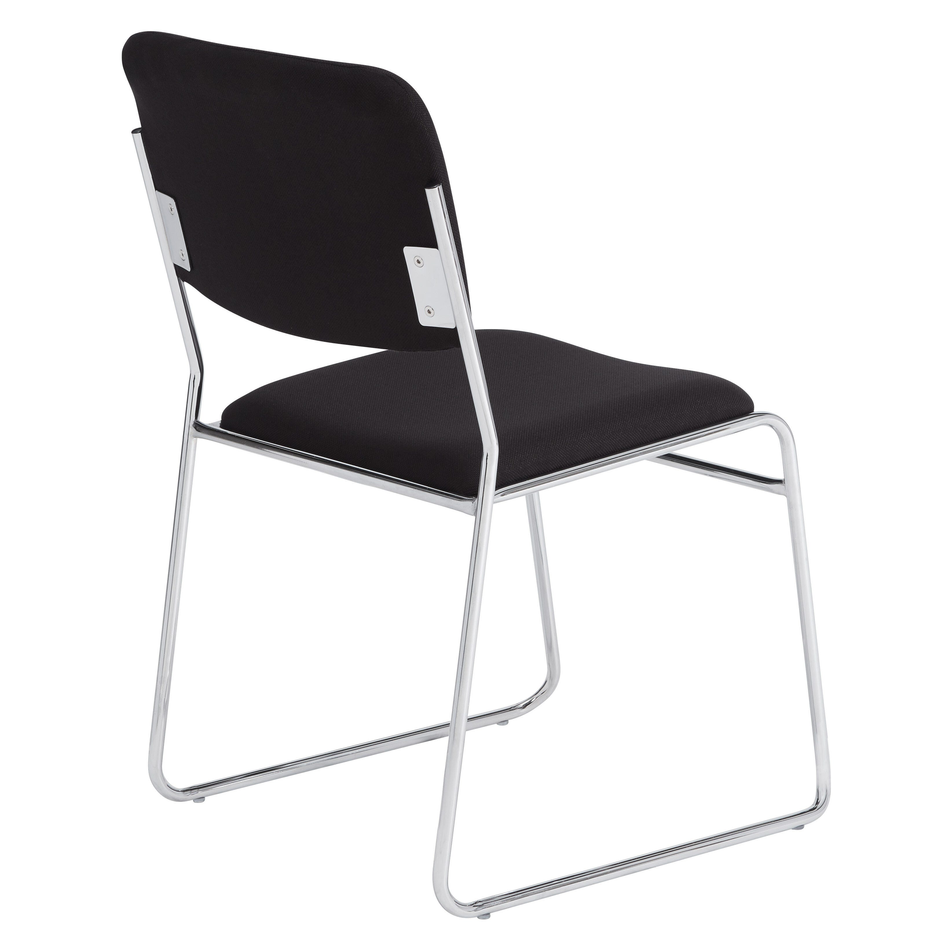 The 8600 Series Signature Stack Chair by National Public Seating has a 5/8-inch 17-gauge tubular frame with a 5/8-inch frame strengthener and non-marring floor glides. The contoured seat and back allow for comfort and easy stacking. Fabric is protected with Scotchguard.