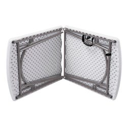 With our all-new decorative 6 ft. banquet fold-in-half space saver heavy-duty table, NPS brings to the table a new level of elegance & style. With its first of its kind rounded ends and oblique edges, this classy table will enhance the ambiance of your room. This banquet table folds in half, making it very convenient for storage when you’re not using it. Table is built from high-density polyethylene (HDPE) plastic and a speckled grey powder-coated 19 gauge steel frame. The table is lightweight, and weather resistant. It is designed with safety gravity rings which prevent table legs from collapsing while in use and is equipped with our unique locking technology that automatically locks the tabletop in place as legs are unfolded. Once folded, table can be easily carried & transported with its convenient carrying handle. Our table is extremely durable, ANSI BIFMA tested and backed by a 10 year warranty.