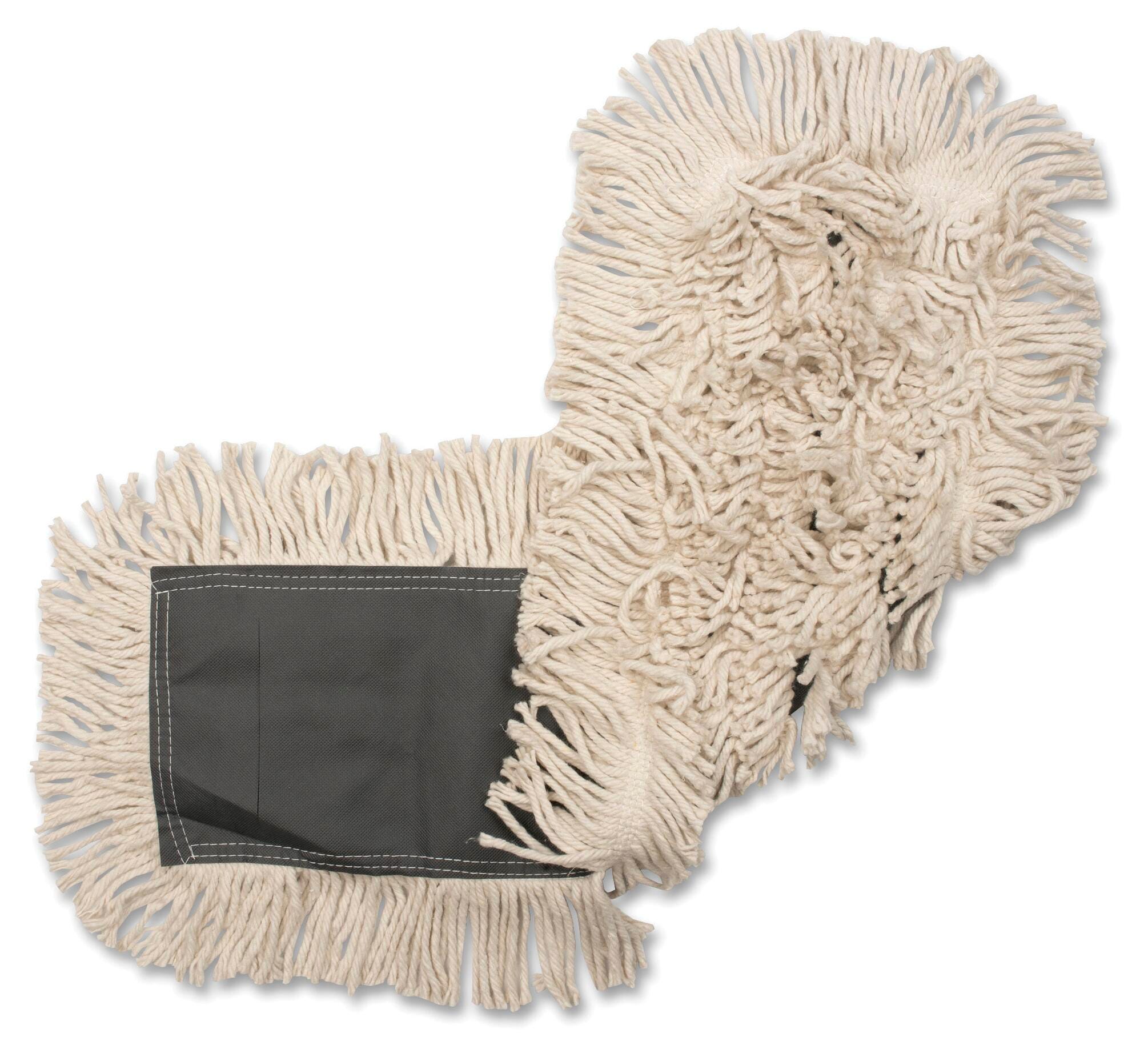 Disposable dust mop refill keeps you ready for everyday dusting. The four-ply, looped end design reduces fraying and unraveling. Keyhole-style, half-tie synthetic backing is quick-drying. Disposable nature means you can just toss it away once you are done. Dust mophead is made of cotton. The handle/frame is sold separately.