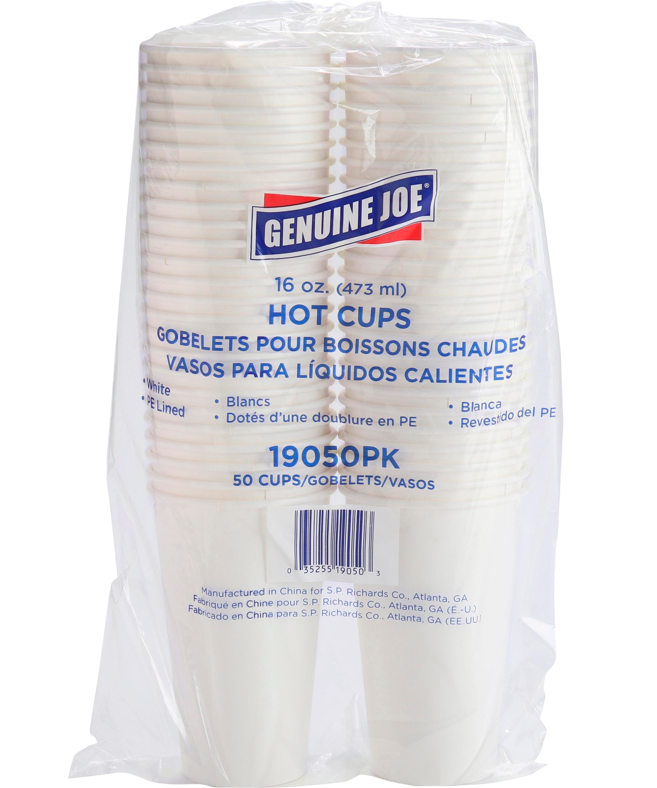 Genuine Joe Disposable Hot Cup, 16 oz, White, Pack of 50
