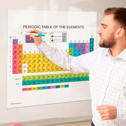 This large magnet from Geyer Instructional features a filled-in Periodic Table for display in classrooms, labs, and even homes. This handy magnet displays the complete periodic table to help students grasp the different elements and master this science staple. The magnet will adhere to any magnetic whiteboard, chalkboard, and other magnetic surfaces. It measures 23 x 24 inches to make it easy to see and read.Features