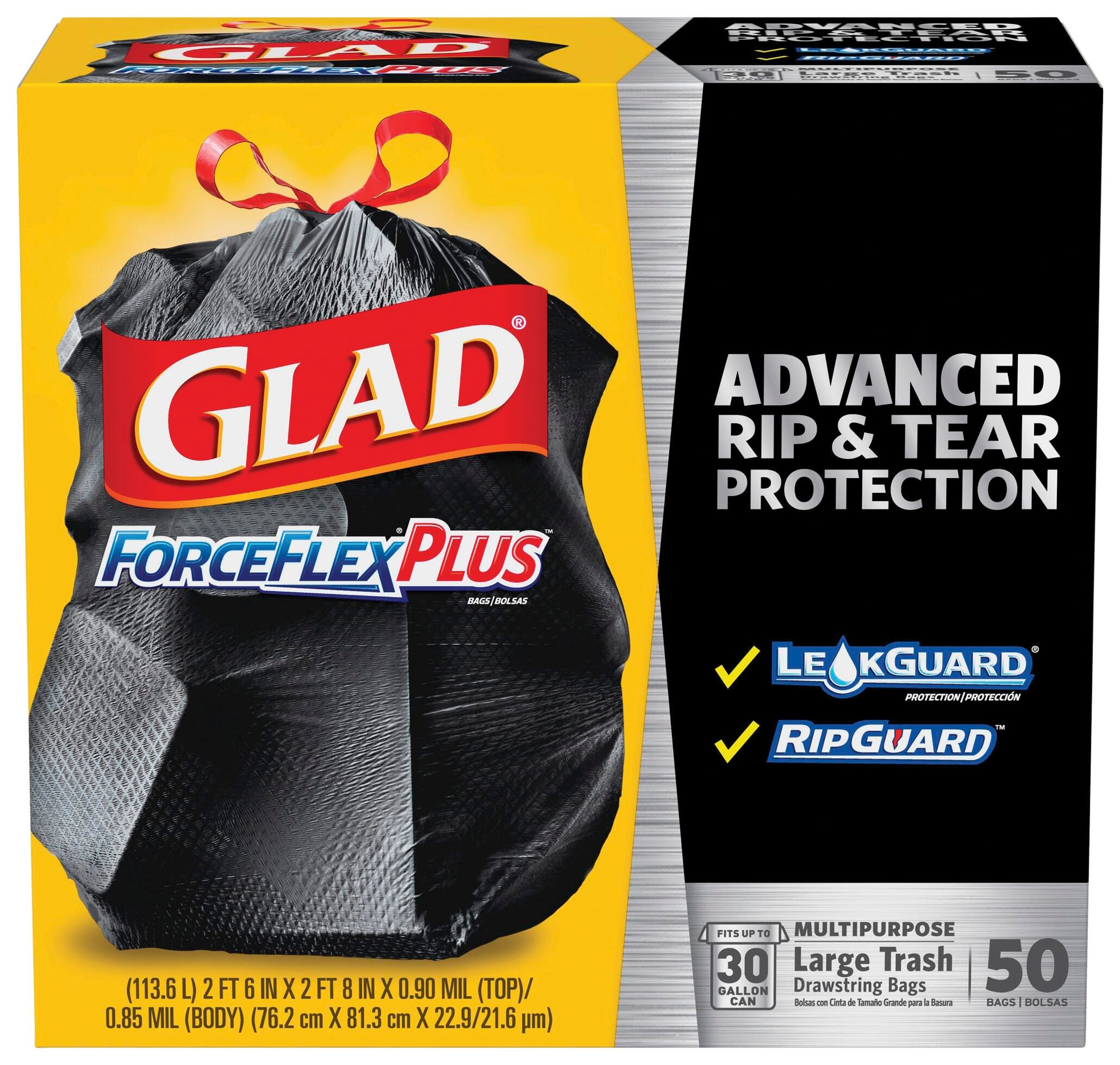 Glad ForceFlexPlus Heavy Duty Drawstring Trash Bags, 30 Gallon, Black, 50 Count, Case of 3