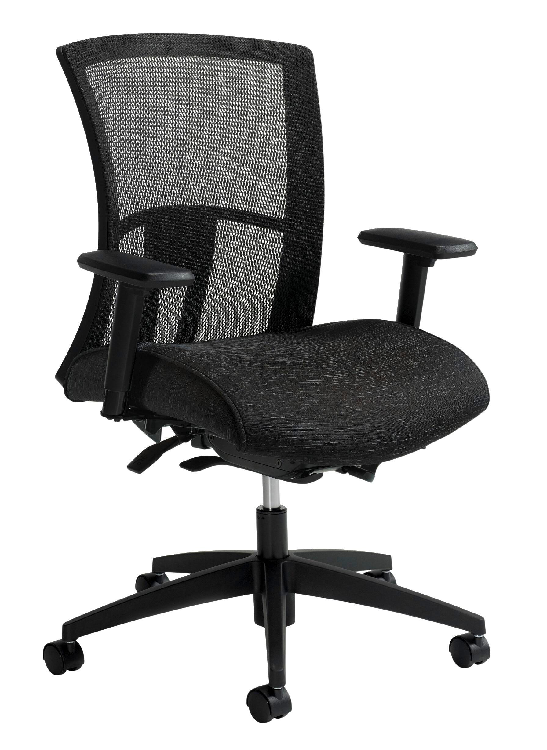 Global Industries task chair has a mesh back with a fabric seat have many functions for exceptional comfort. It features a weight-sensing synchro-tilt mechanism, tilt tension adjustment, tilt lock, and pneumatic seat height adjustment.