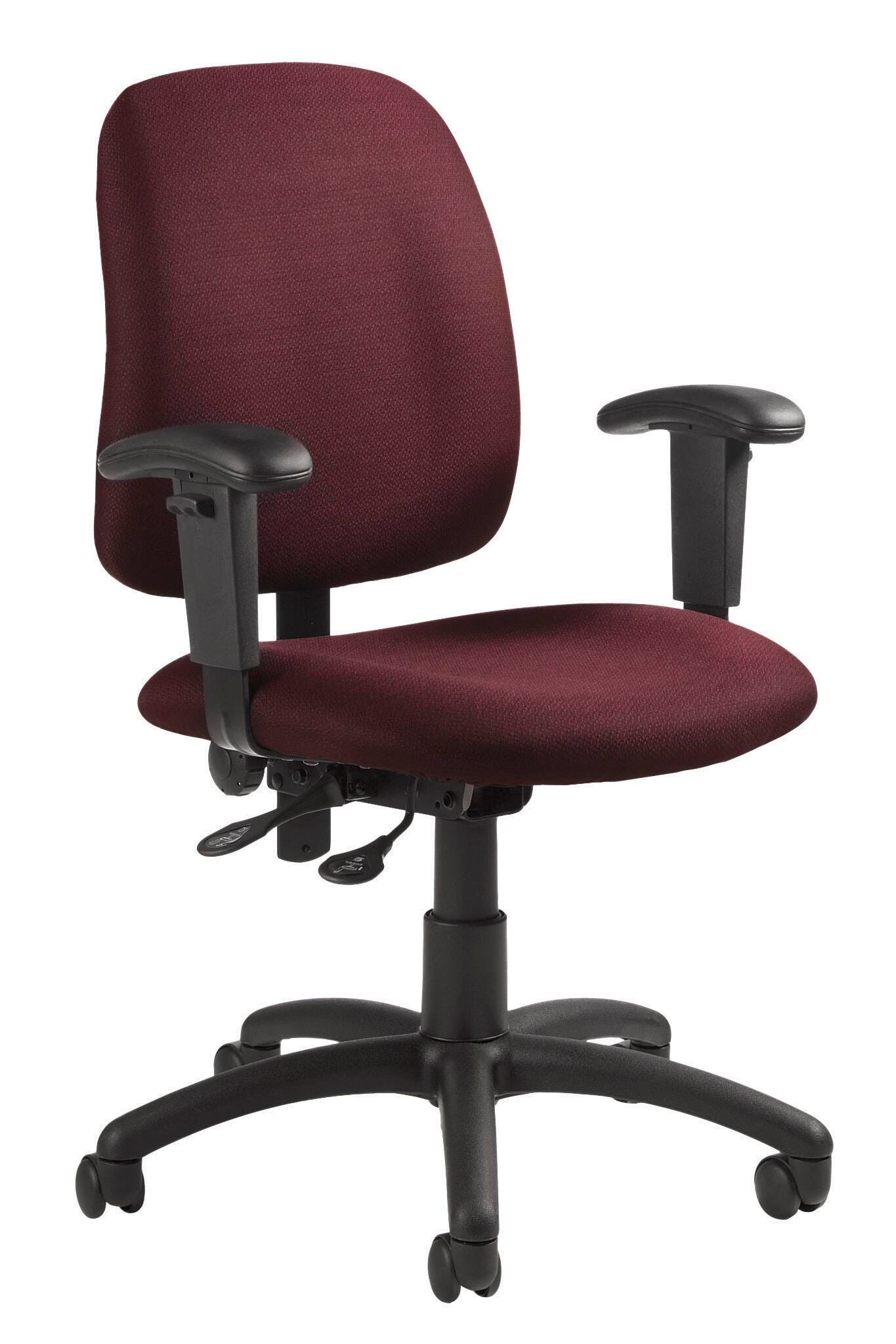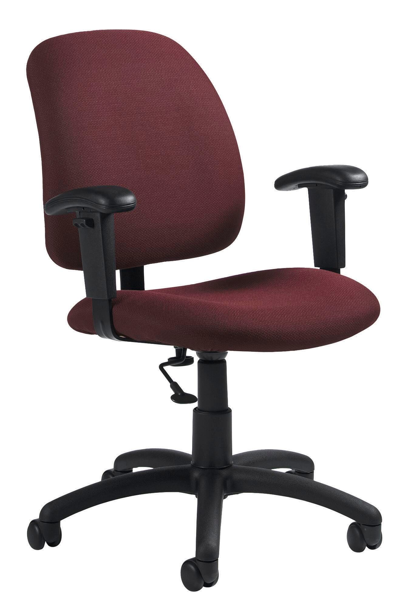 Operator task chair has many adjustable features to help make the chair fit you. Design features a pneumatic seat height adjustment to accommodate individuals of different heights, back height adjustment, and tilt tension adjustment. The seat and back angle also adjustable with an infinite locking feature. The chair measures 25 W x 22-1/2 D x 36 H inches