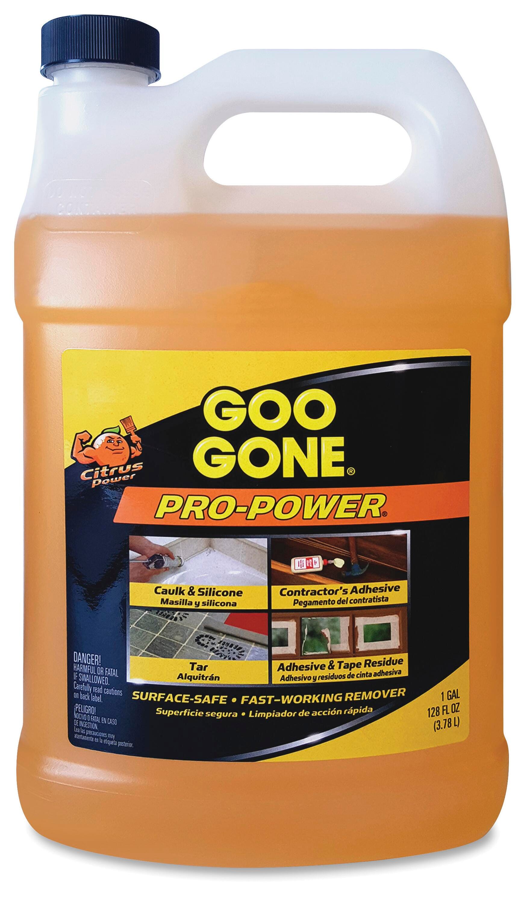 Goo Gone's Pro-Power is enhanced to tackle the toughest jobs so there's no job too big or too small. Use Goo Gone Pro-Power with enhanced Goo Gone formula to remove caulk and silicone, contractor's adhesive, grease and tar, tape, tape residue, varnish, wax and glue on nonporous surfaces. It is a surface-safe, fast-working remover. Easy-to-pour bottle includes a built-in handle at the top and screw-on top. Pro Power also offers a pleasant citrus scent.