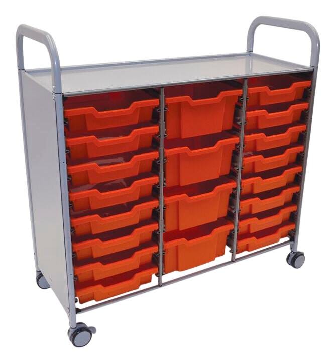 Gratnells Callero Plus Triple Cart with 16 Shallow F1 and 4 Deep F2 Trays, 40-1/5 x 17 x 41-1/2 Inches