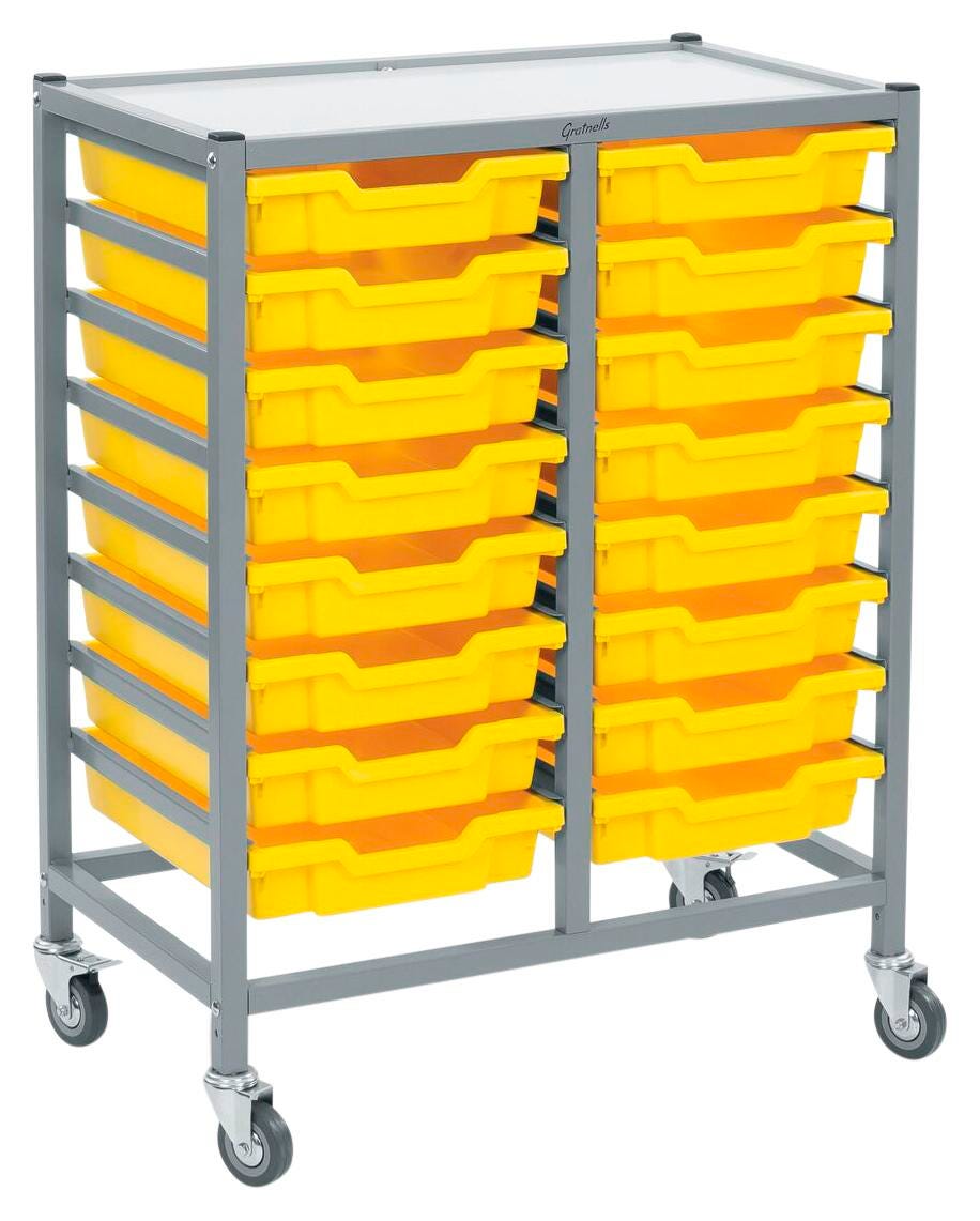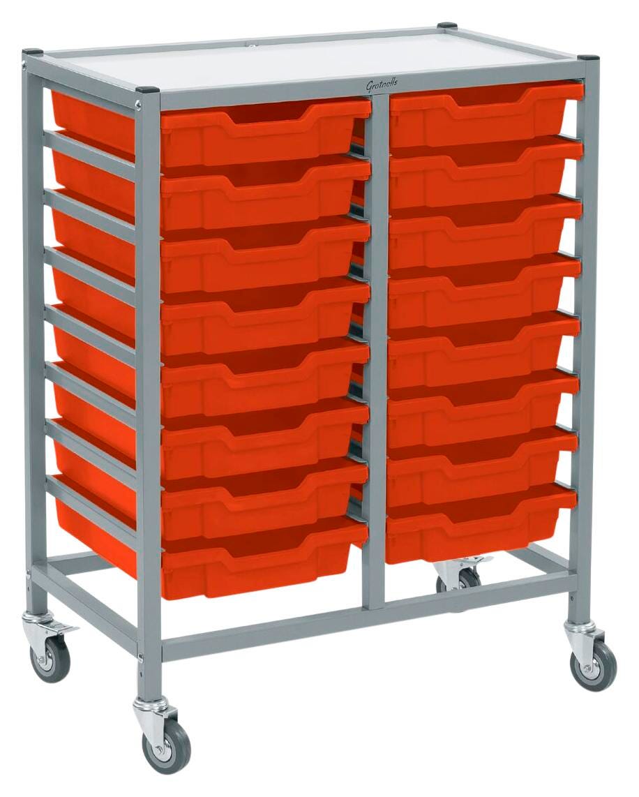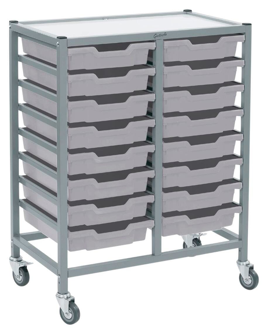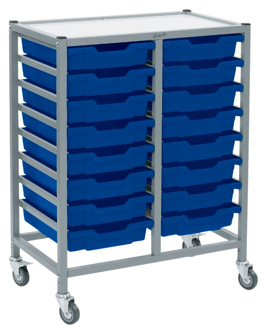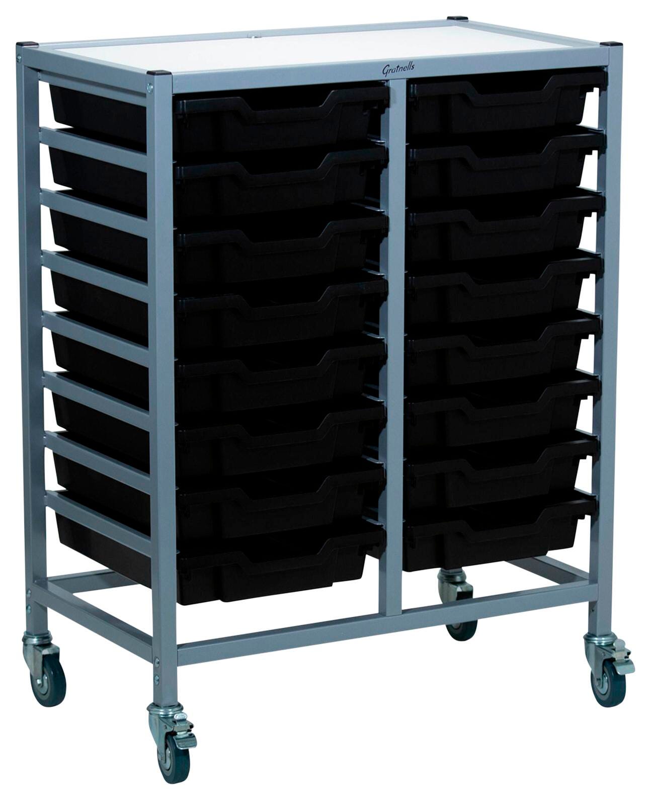Gratnells Dynamis Double Cart, 16 Shallow F1 Trays, 28 x 16-3/5 x 33-1/2 Inches