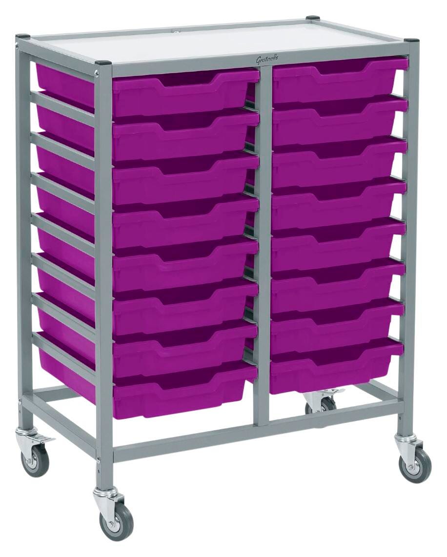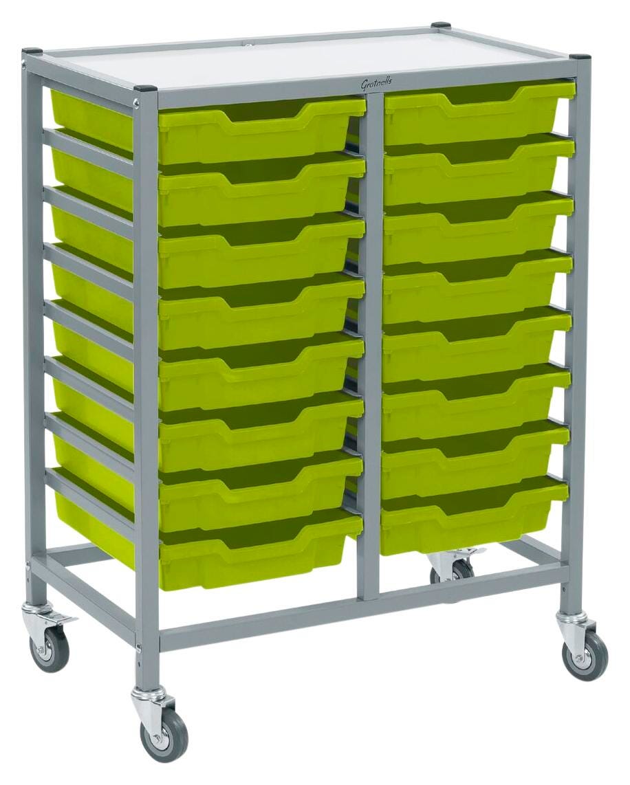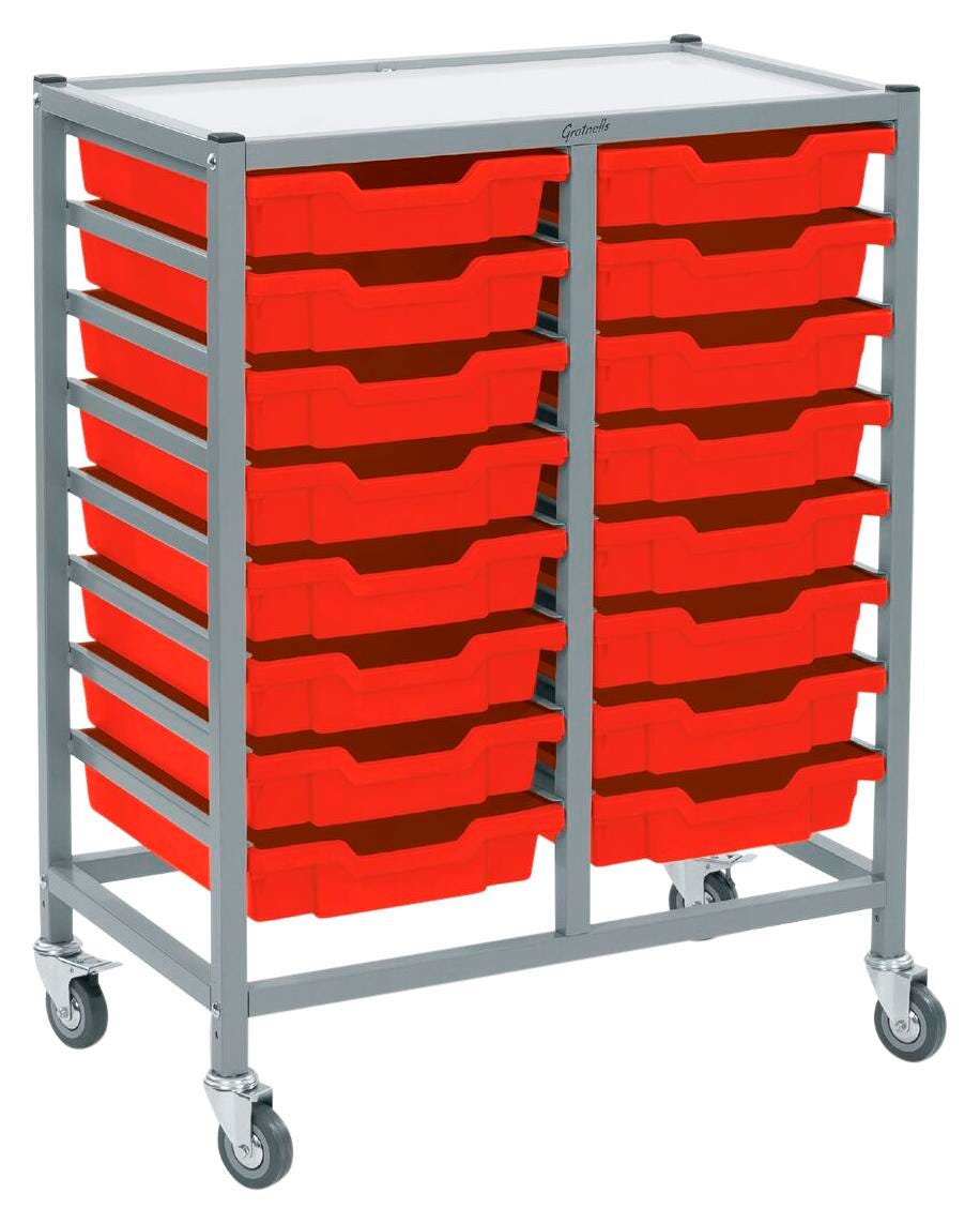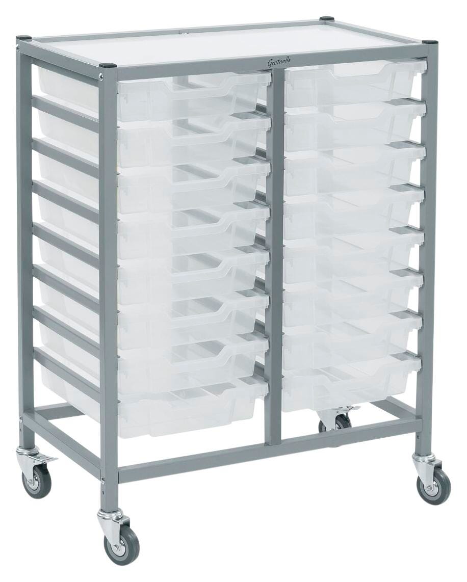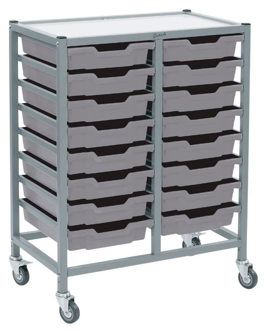 Gratnells Dynamis Double Cart, 16 Shallow F1 Trays, 28 x 16-3/5 x 33-1/2 Inches