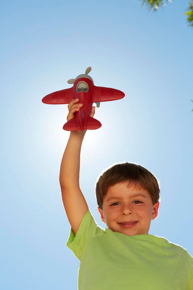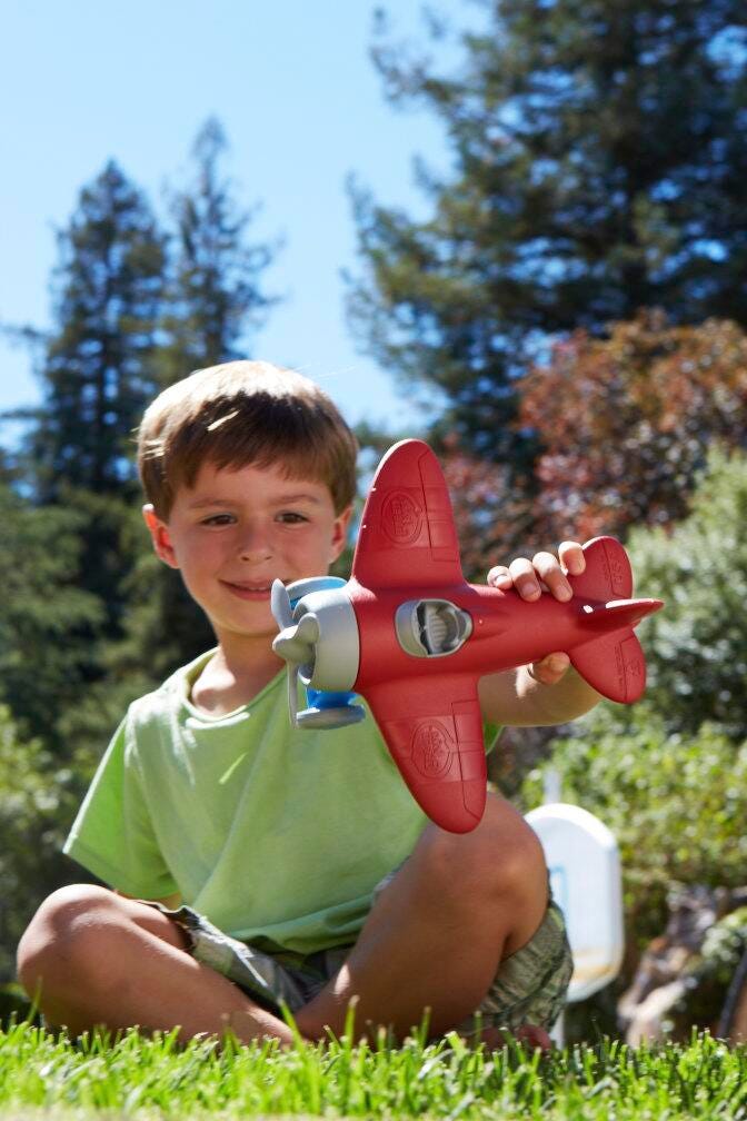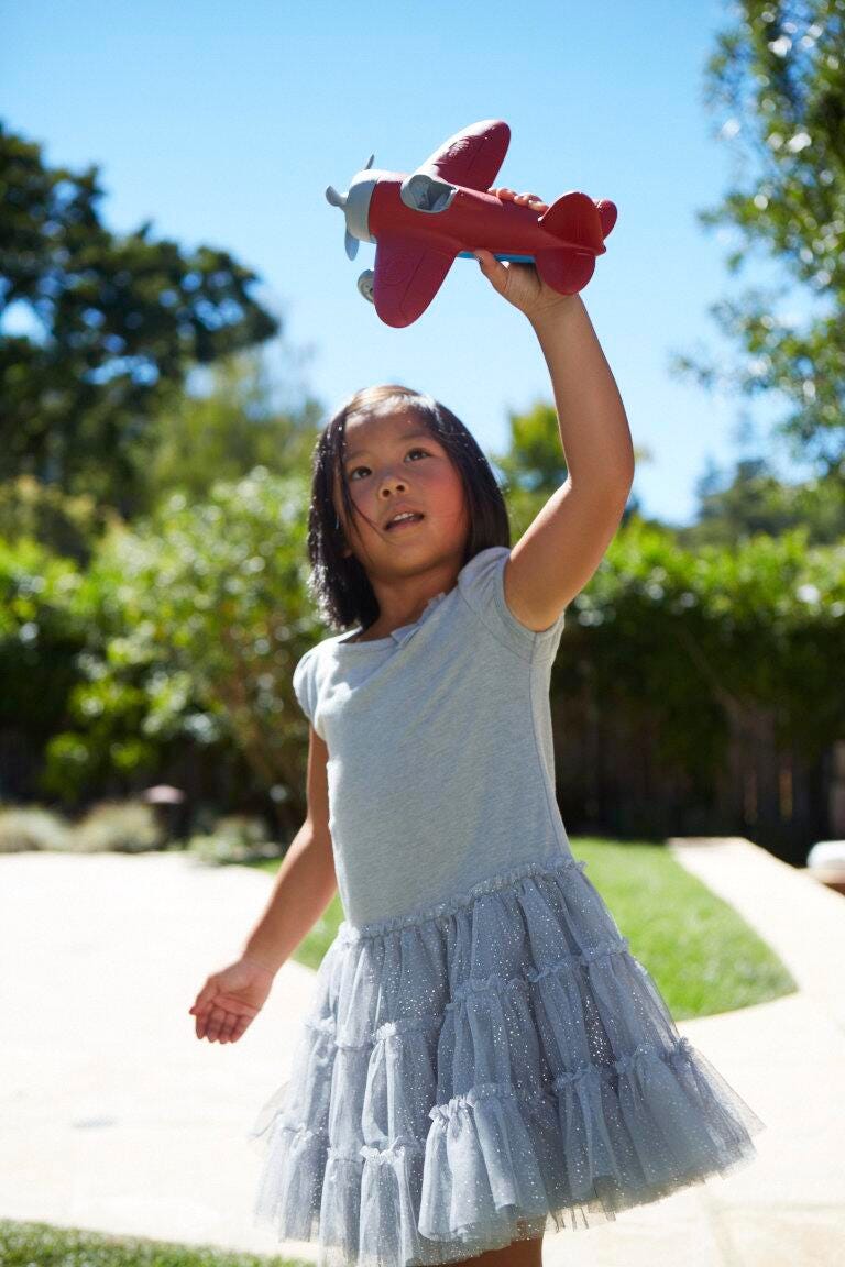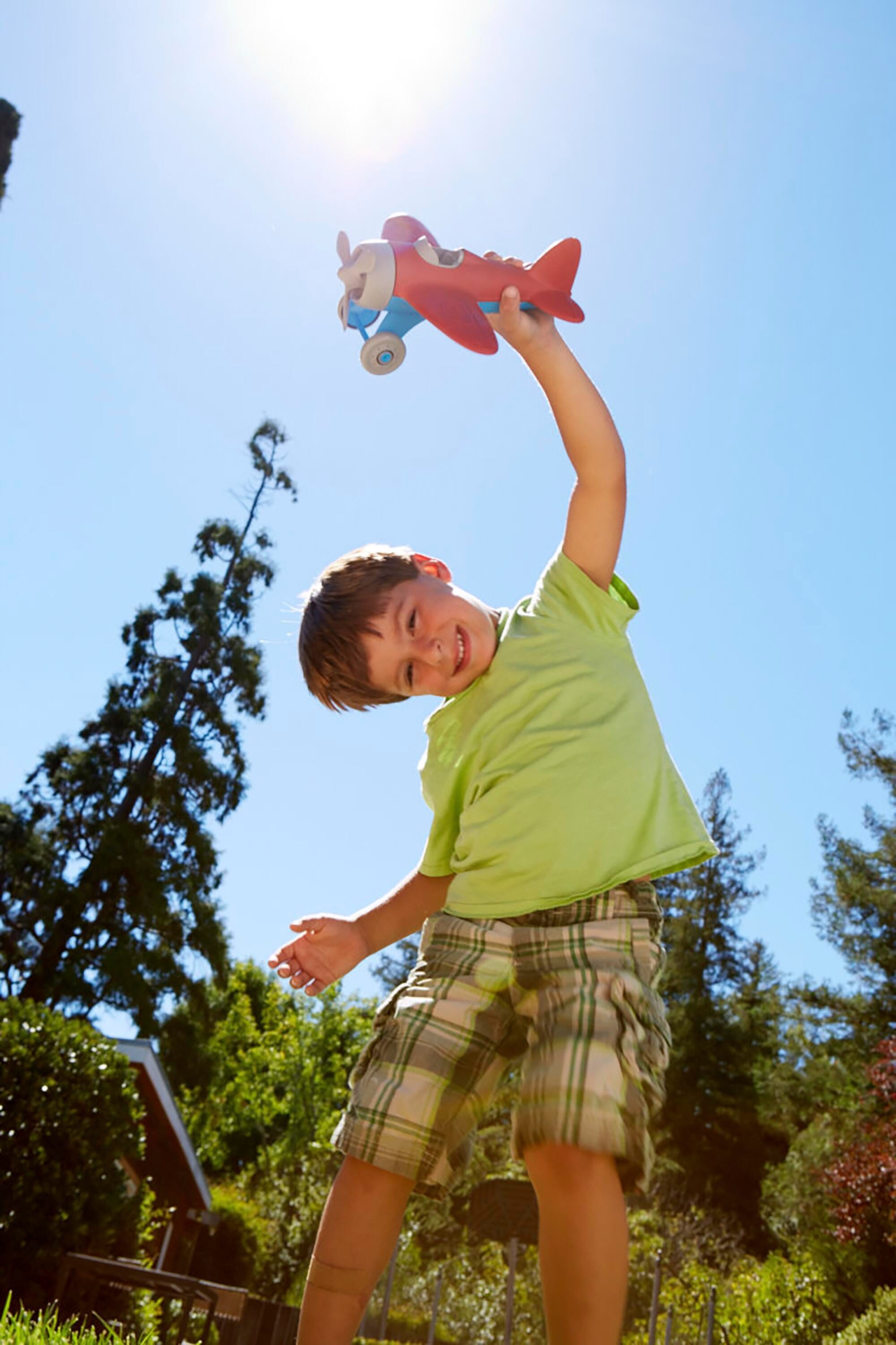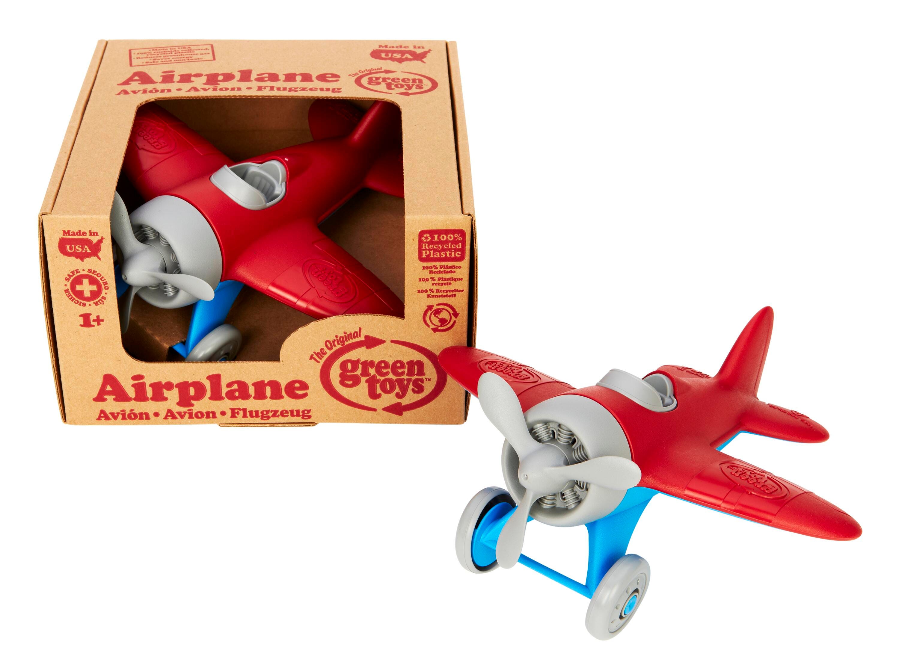 Made in the USA from 100% recycled plastic that save energy and reduce greenhouse gas emissions, this single-seater plane features a spinning propeller, two-wheeled landing gear, and racing stripes on its rounded wings. Imaginations will soar to new heights as pilots-in-training practice loops, rolls, and spins with this eco-friendly flyer. The lightweight design and tapered, easy-to-grasp body shape let even the littlest aviators ascend through flight school with ease.