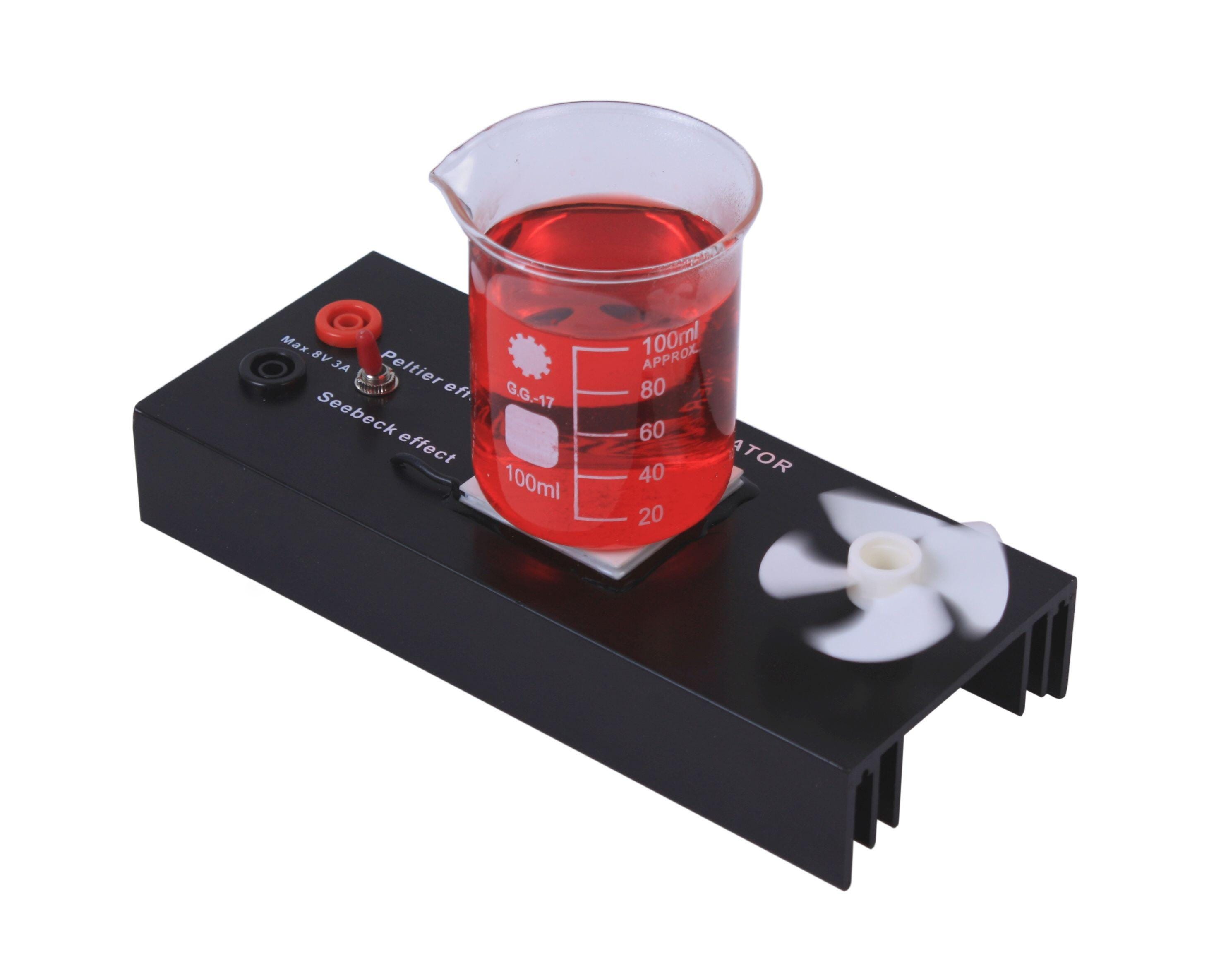 The Thermal Energy Demonstration apparatus visualizes and introduces the Seeback and Peltier Effects using an easy-to- thermal generator.