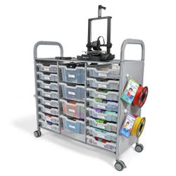 - Convenient, sturdy metal cart and plastic tubs allow for neat organization and easy portability between classrooms and other educational spaces