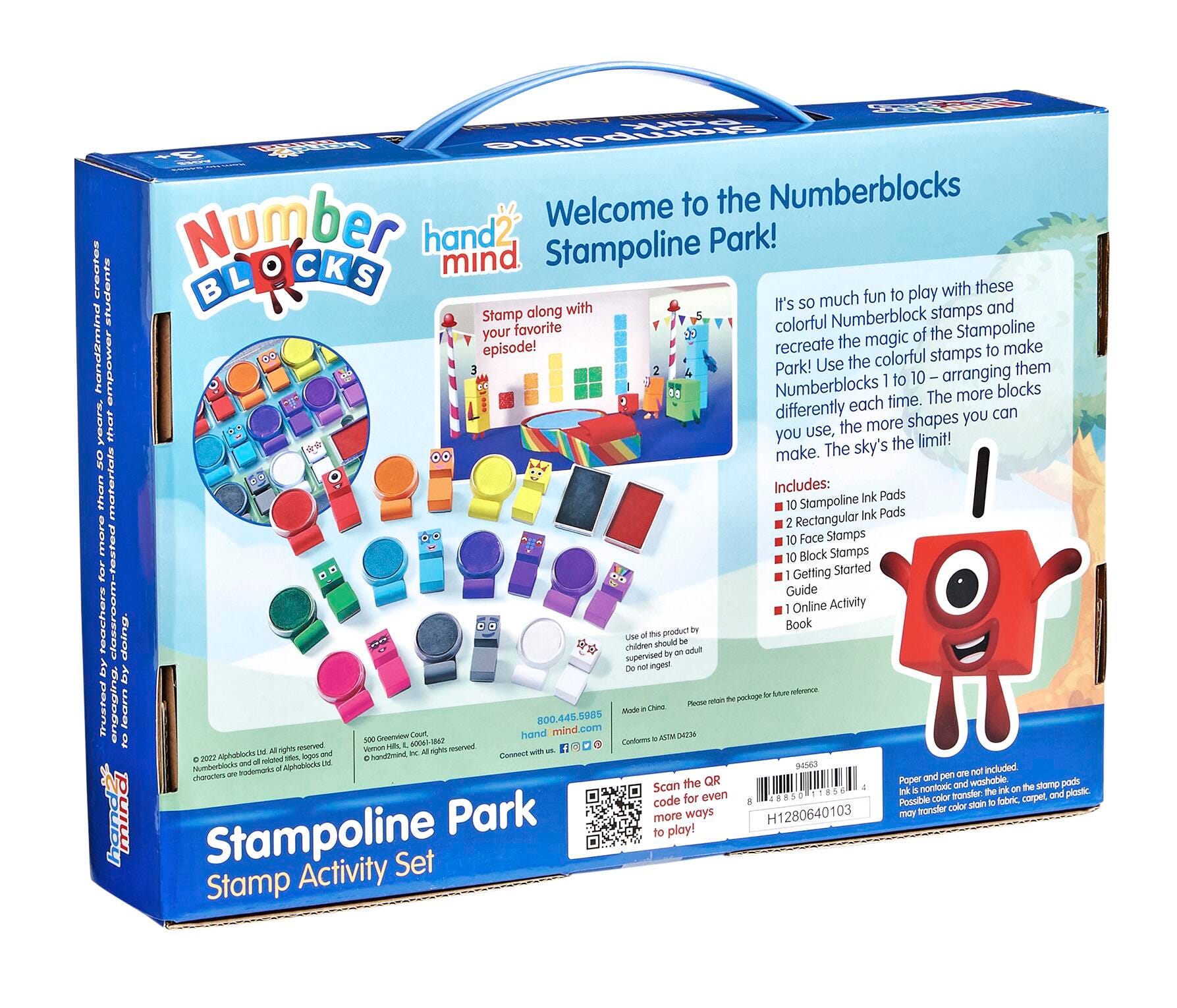 Create your own Numberblocks Stampoline Park! Use the stamps and ink to make your favorite Numberblocks from One to Ten and recreate adventures based on the popular “Stampoline Park” Numberblocks episode.