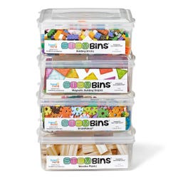 Developed by Brooke Brown—a National Board Certified Teacher, public speaker, and teacher resources developer who specializes in all things STEM and literacy—this set of hands-on STEM materials delivers a creative and developmentally appropriate way for elementary students to build foundational engineering skills. The STEM Bins Comprehensive Kit also contains a 16-page Teacher Guide with teacher questions and prompts, and blackline masters including a blueprint recording sheet, foldable recording booklets, and writing templates, to help educators prepare and organize lessons in busy classrooms. Young students will love to design, build, collaborate, and create while they nurture core skills. These STEM Bins align with Science and Engineering Standards. NOTE: Some assembly required.Features