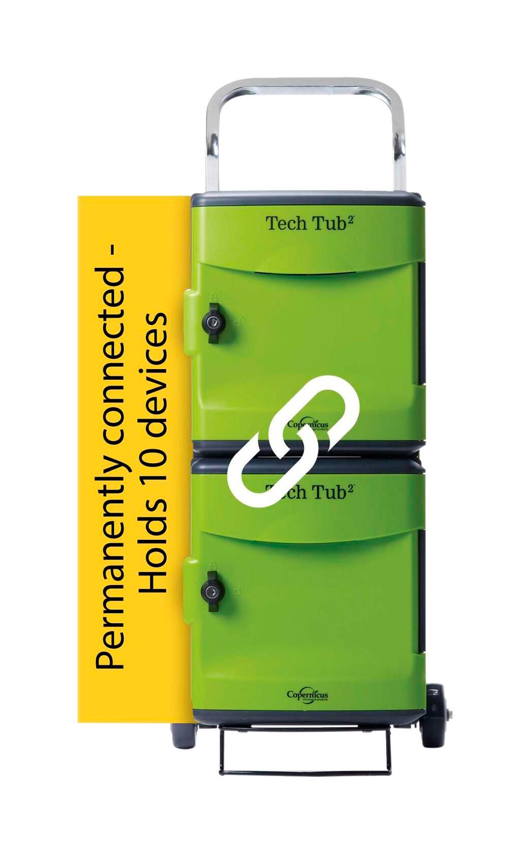 Copernicus Tech Tub2 Trolleys are designed for devices on the move! They store and charge small sets of six to ten iPads, 11” Chromebooks and other tablets around your school.