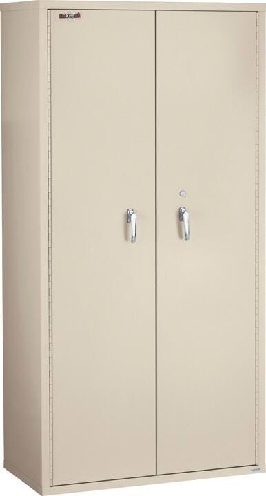 The FireKing Storage Cabinet measuring 36 W x 19-1/4 D x 72 H inches is equipped with a High Security Medeco Key Lock, ensuring resistance to picking and drilling. 1 Fixed Shelf and 4 Adjustable shelves. The Parchment powder coat finish is scratch-resistant, providing a lifetime quality appearance. Carries the 1 hour UL fire rating.