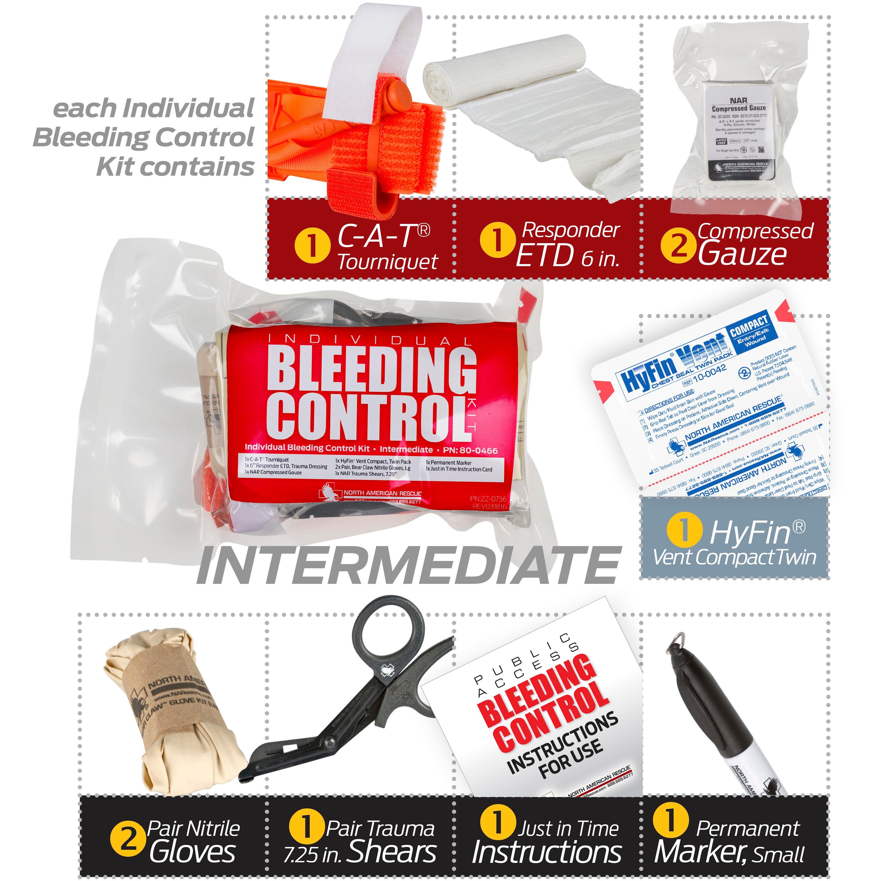 North American Rescue Bleeding Control Kit is packaged in a compact, ruggedized vacuum-sealed pouch. Provides intuitive and easy to use tools that are proven to help save lives.