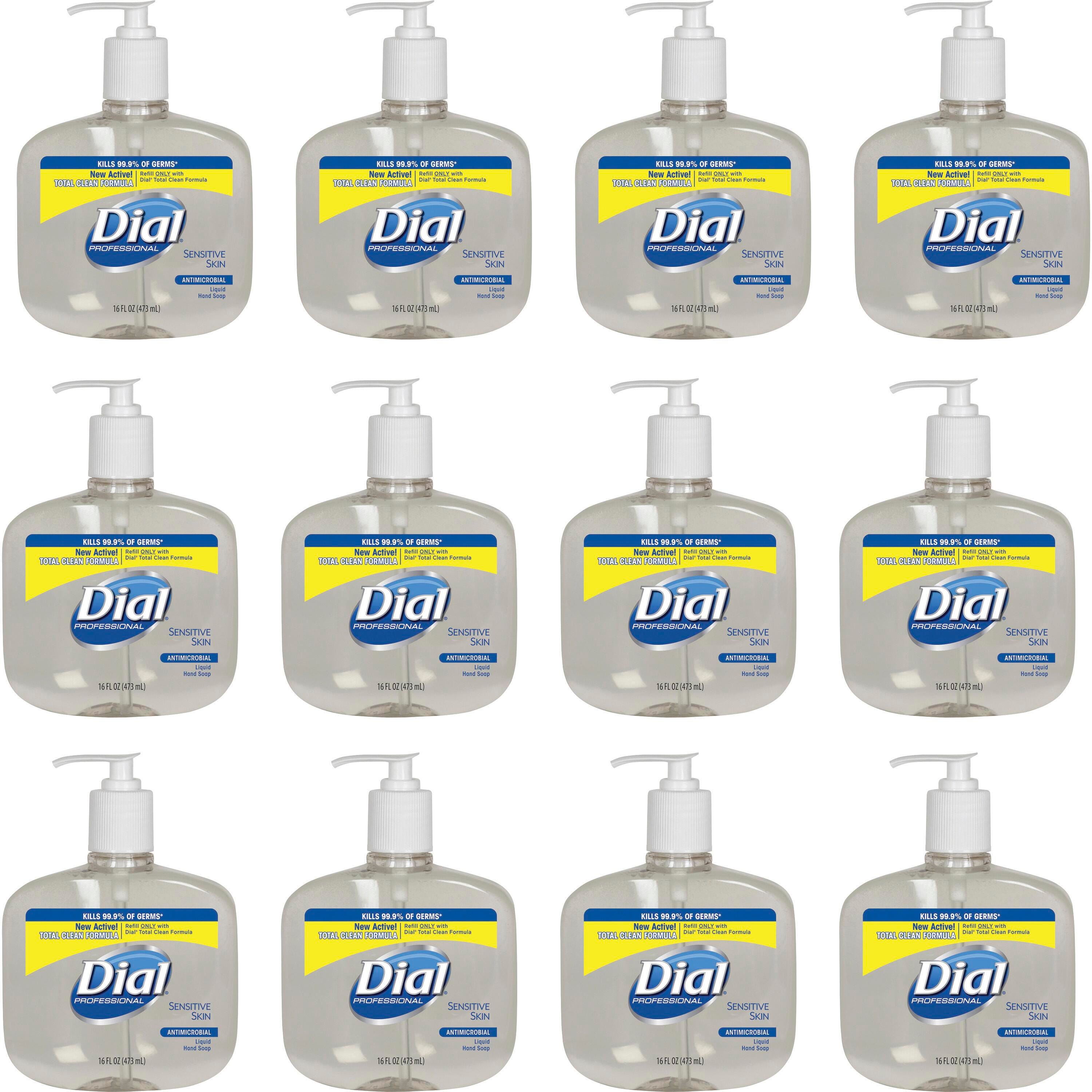 Dial Sensitive Skin Antimicrobial Liquid Soap, 16 oz, Clear, Pack of 12