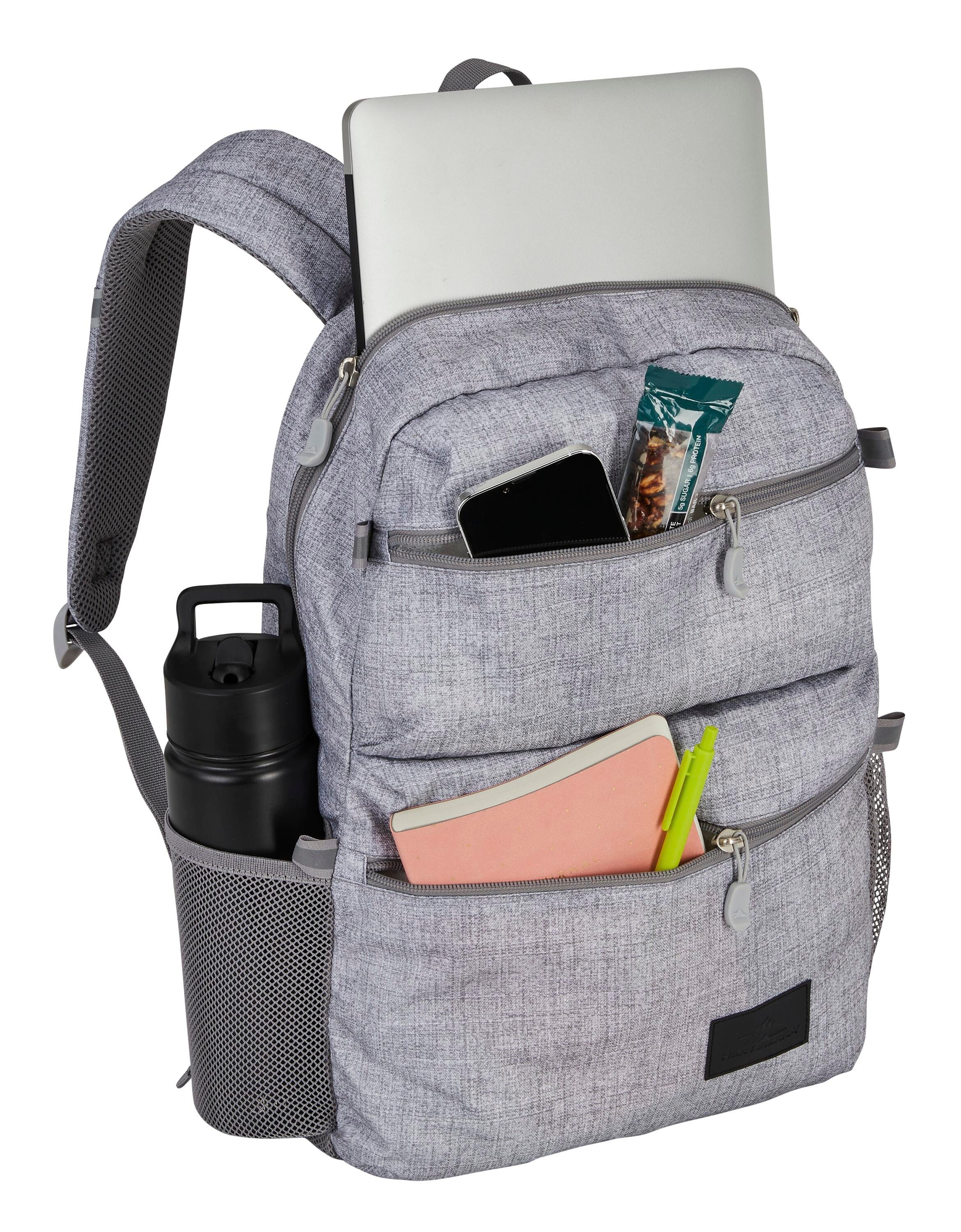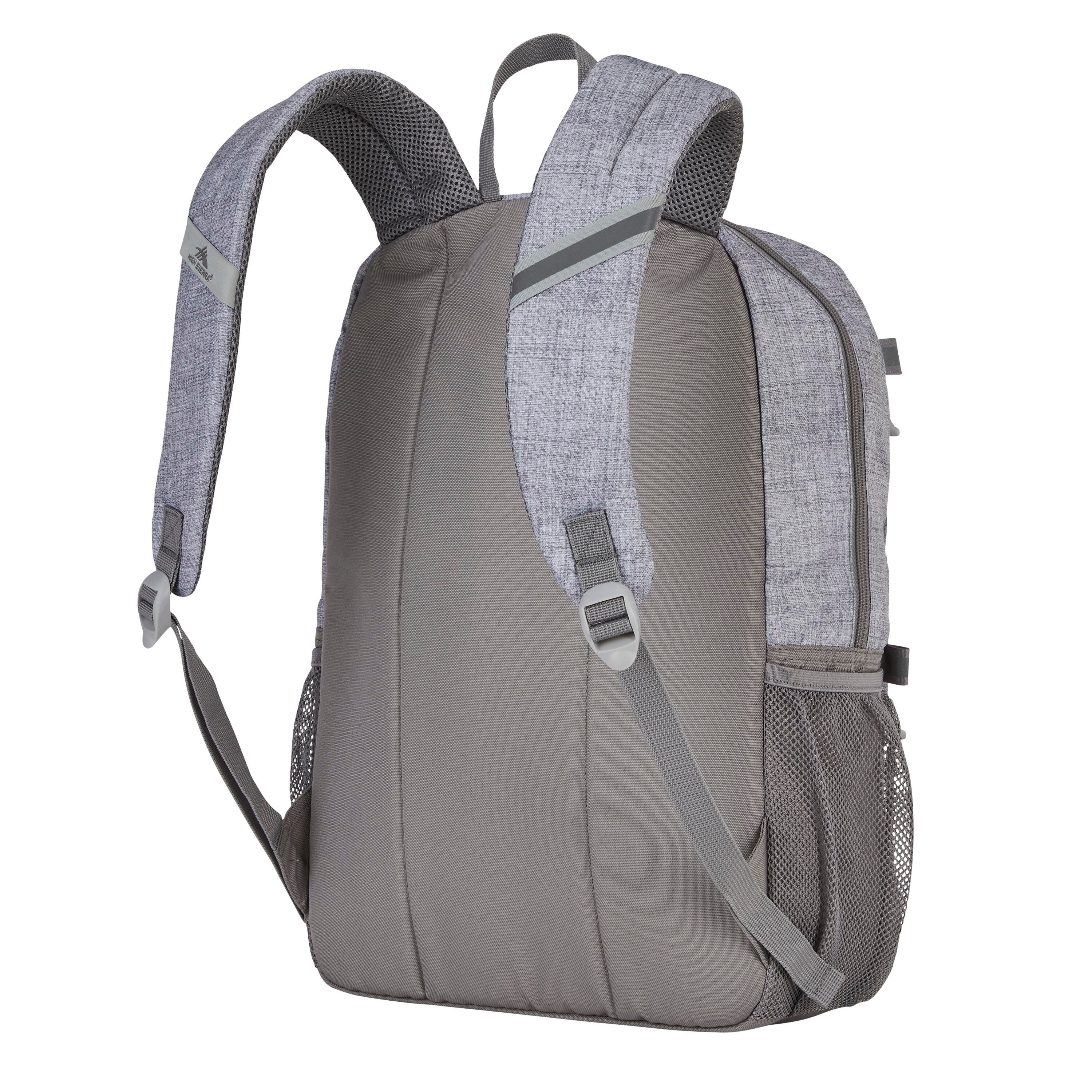 Spacious main compartment with padded laptop/tablet sleeve that fits most laptops up to 5.6 inches. Features 360 degree reflectivity. Sizable exterior pockets for quick access. Padded back panel and shoulder straps. Dual water bottle pockets. Backpacks measure 17-1/2 x 11-3/4 x 6 inches.