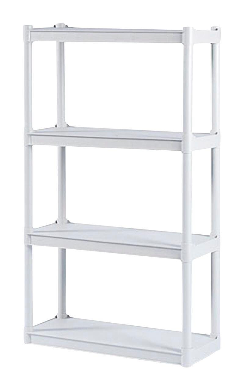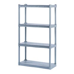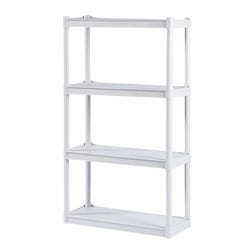 Rough N Ready Open Storage Shelving System is made from injection-molded polypropylene that makes it perfect for office supplies, files, books, and binders. This light storage system has heavy-duty uprights for better stability. There are 4 shelves with a 16-inch clearance between them and each shelf can hold up to 75 pounds. System is washable and resistant to scratch, dent, or rust. Can be assembled without tools in 5 minutes. Unit measures 32 W x 13 D x 54 H inches.Includes: