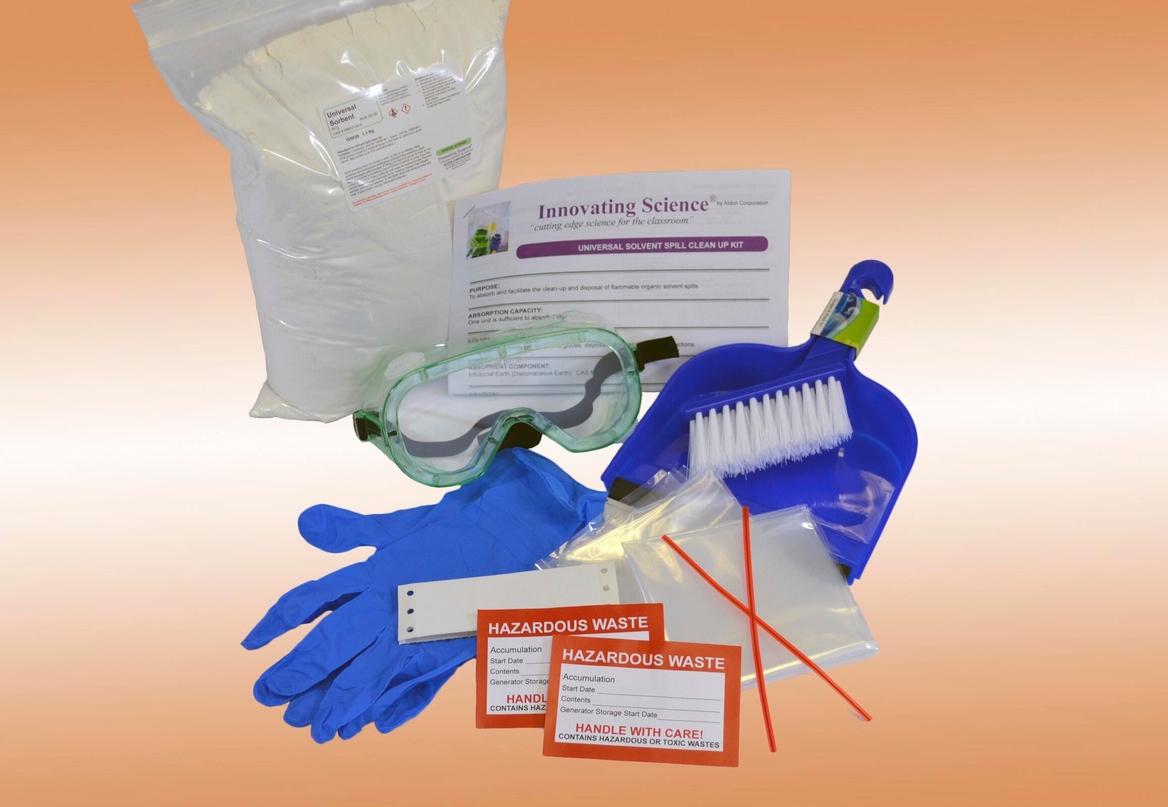 Be prepared for spills in your lab. This universal absorbent eliminates the guesswork and is safe for use on all chemicals except hydrofluoric acid. This kit contains enough material to absorb 1 liter of solvent. Complete with instruction sheets and SDS.Features
