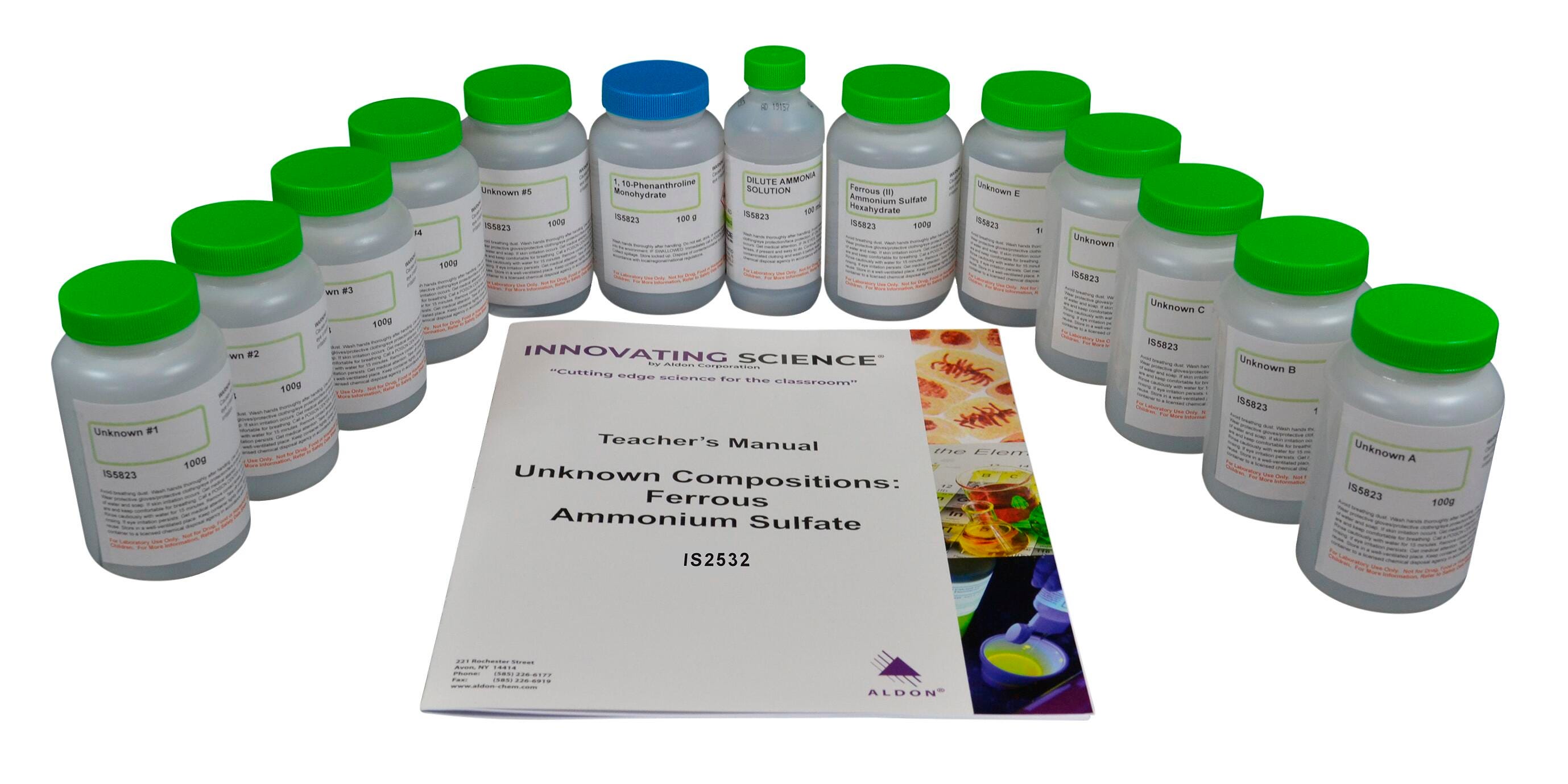 In this experiment, students will perform Gravimetric Analysis and Spectrophotometric analysis to determine the purity of ferrous ammonium sulfate samples of unknown composition. This kit has all the materials needed for 25 groups. Teachers Manual and Student Study Guide copymasters are included.