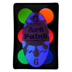 Art Paint is a highly pigmented, easy to use water-based paint. The sets come in an attractive sturdy black tray. Works up easily with a few drops of water and a brush. Pans hold 10 grams of paint. Art Paint is semi opaque/semitransparent paint. Art Paint has strong bright colors. Colors are very vibrant, and paint is rich with pigment. It is a great paint for art, craft, school, and decoration.Includes 6 Fluorescent Colors: