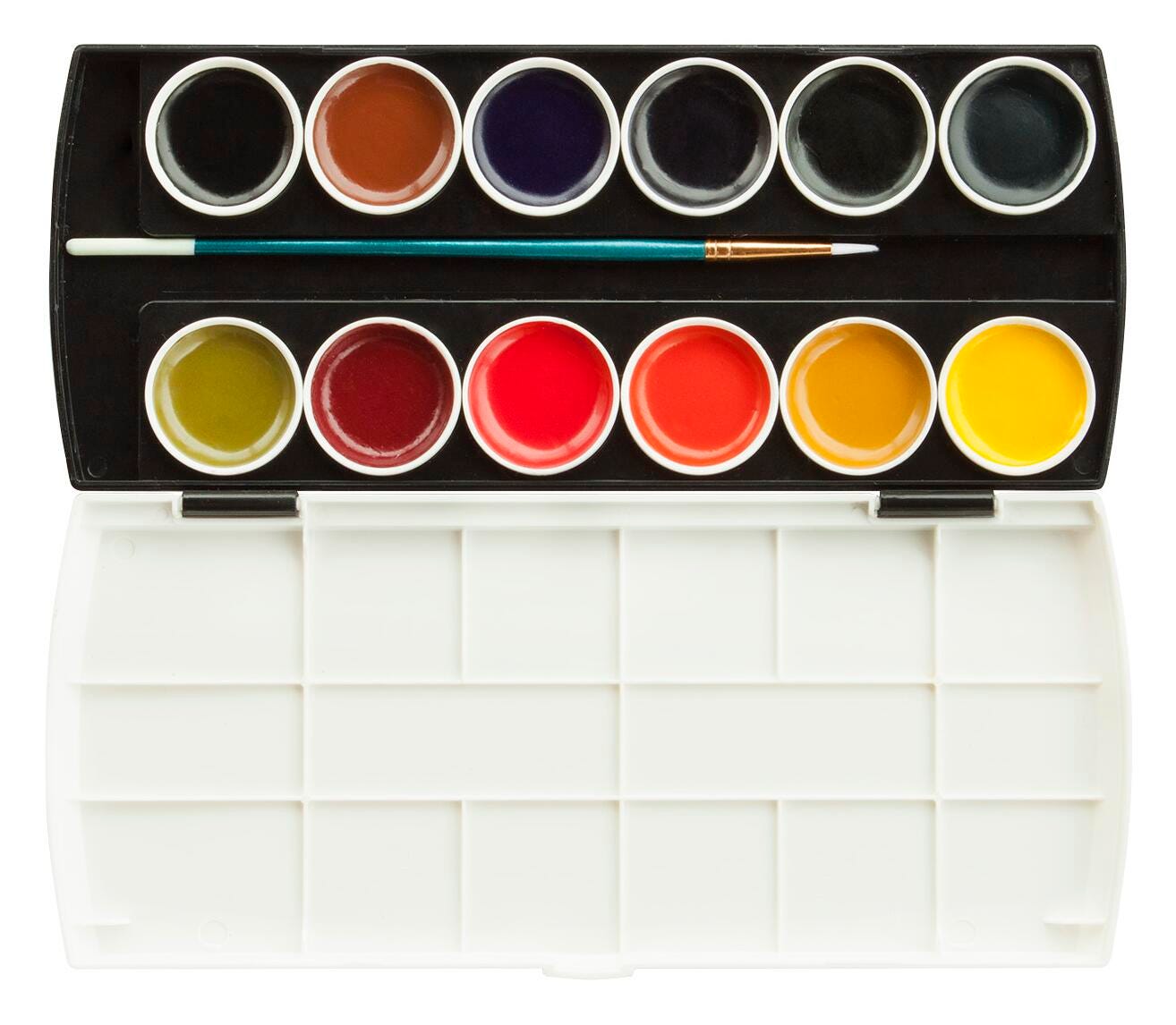 12 vibrant and nicely pigmented semi-moist watercolors. Comes in a hinged box and a brush.Includes 1 Each of the Following Colors: