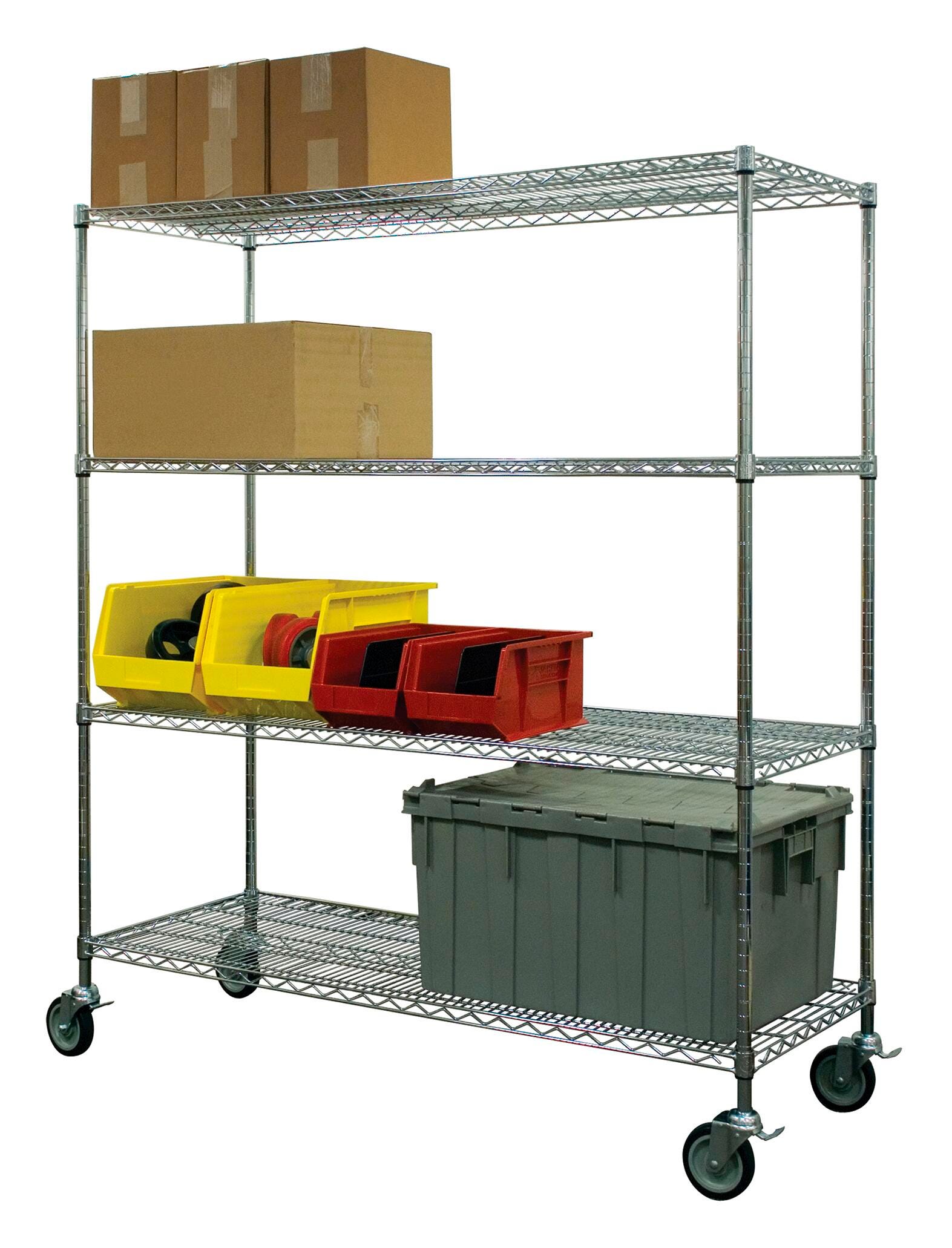 These mobile wire carts are constructed to the highest quality standards and feature rust resistant chrome plating. This practical Shelf Storage Unit is perfect for the kitchen, bathroom or office. Store your kitchenware, office ware, or any other cumbersome items in this spacious 4-Shelf unit. Easy assembly; no tools required. Overall unit height is 69 inches. Cart capacity: 1,000 lbs.Features