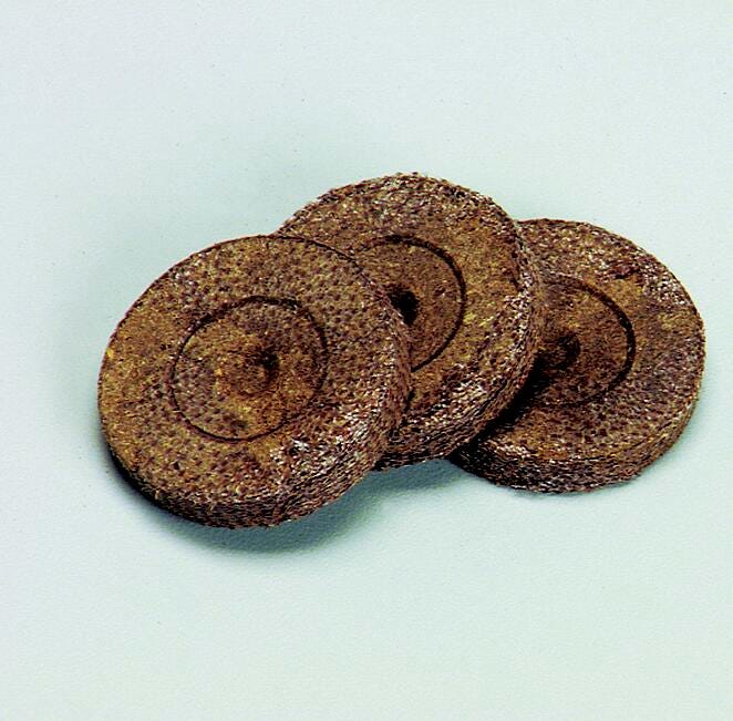 Compressed seed-starting pellets expand to 7 times original size when placed in water. A plastic mesh around the peat holds the material in place until roots grow through. Pre-sterilized and pre-fertilized, the pellets hasten seedling growth and development. 30 mm in diameter. Pack of 50.Features