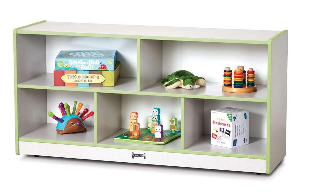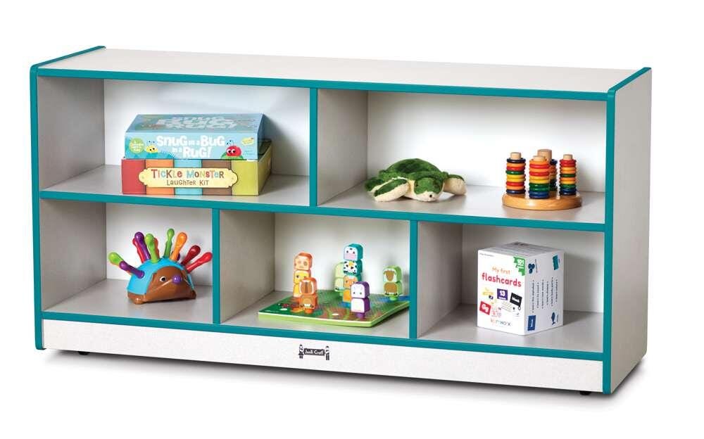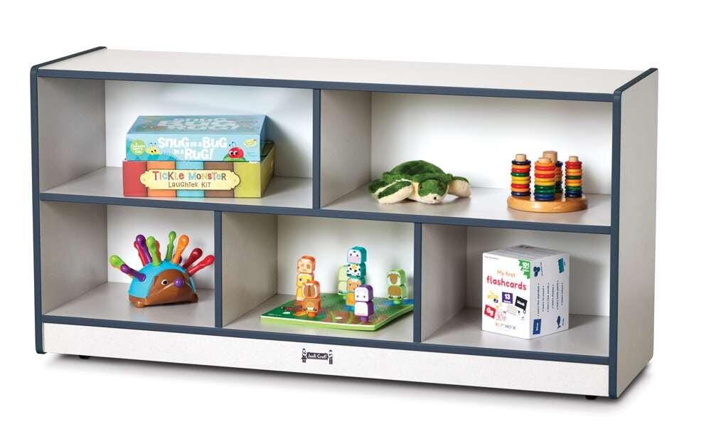 Rainbow Accents Jonti-Craft Toddler Single Storage Unit in gray melamine measuring 48 W x 15 D x 24-1/2 H inches comes with radiused corners and rounded edge banding that makes it the ideal choice for early learning environments. It is caster mounted, features write-n-wipe recessed backs and has a gray colored base with white speckles. Melamine line is constructed from the optimum quality thermofused melamine.
