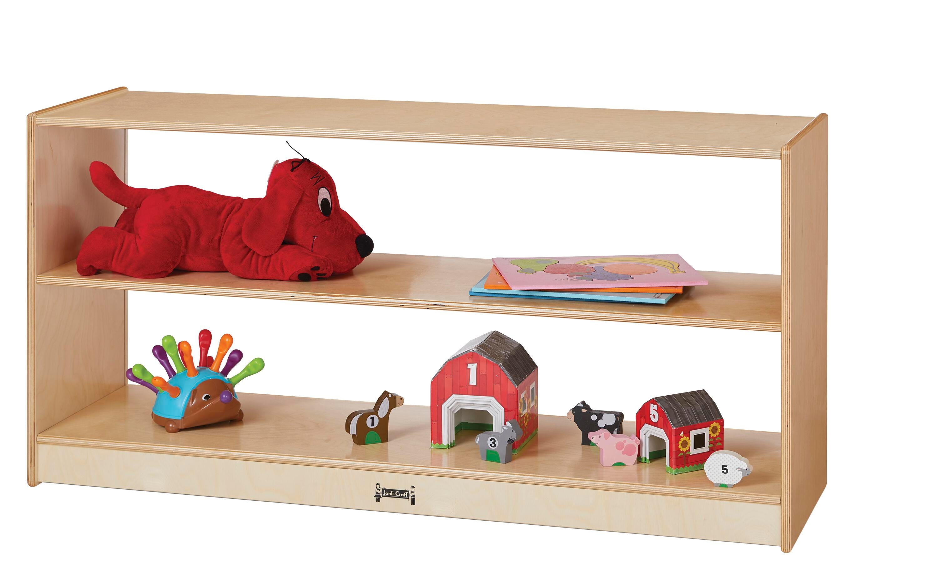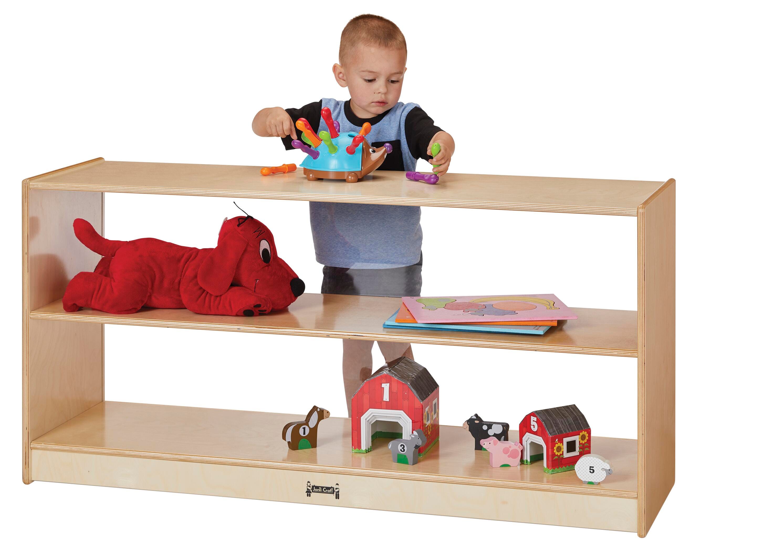 This storage unit is perfect for toddler areas as the see-thru back provides easy viewing of little ones. The single fixed-shelf gives ample space for storing a variety of toys and stuffed animals. Plus, it’s stationary so you won’t have to worry about the unit moving if youngsters use it to steady their balance.